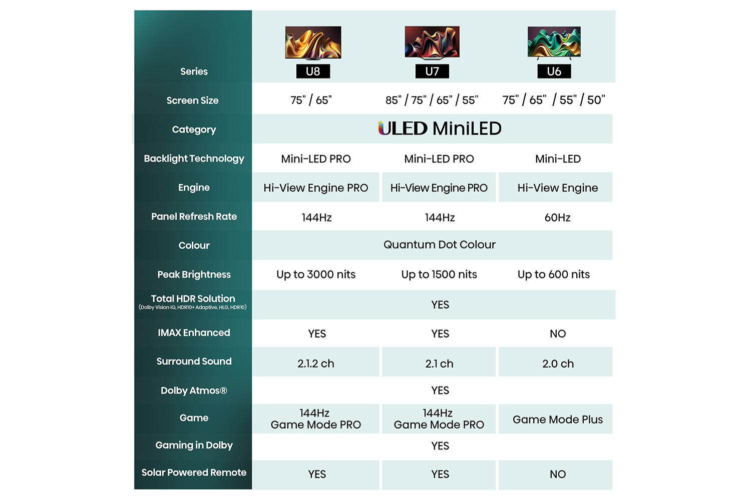 Smarter. Brighter. Better than ever. Hisense U6 Series is the TV you need to know about. Changing how you watch and game with incredible features. Features like Mini-LED. Creating a more realistic image than with ordinary LED and ensuring whatever you’re watching looks great in any light. With Quantum Dot Colour too, which brings over a billion colours, you’ll see details you’ve never seen before. Even on the 20th rewatch of your favourite show.