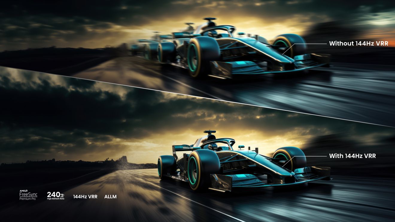 144Hz Game Mode Pro automatically fires up when a gaming connection is detected through ALLM. With 144Hz VRR experience the smoothest possible game play enhanced further with ultra low input lag. Image tearing and stuttering are also a thing of the past thanks to AMD Freesync Premium Pro, specifically created to deliver the most responsive and detailed gaming experience yet.