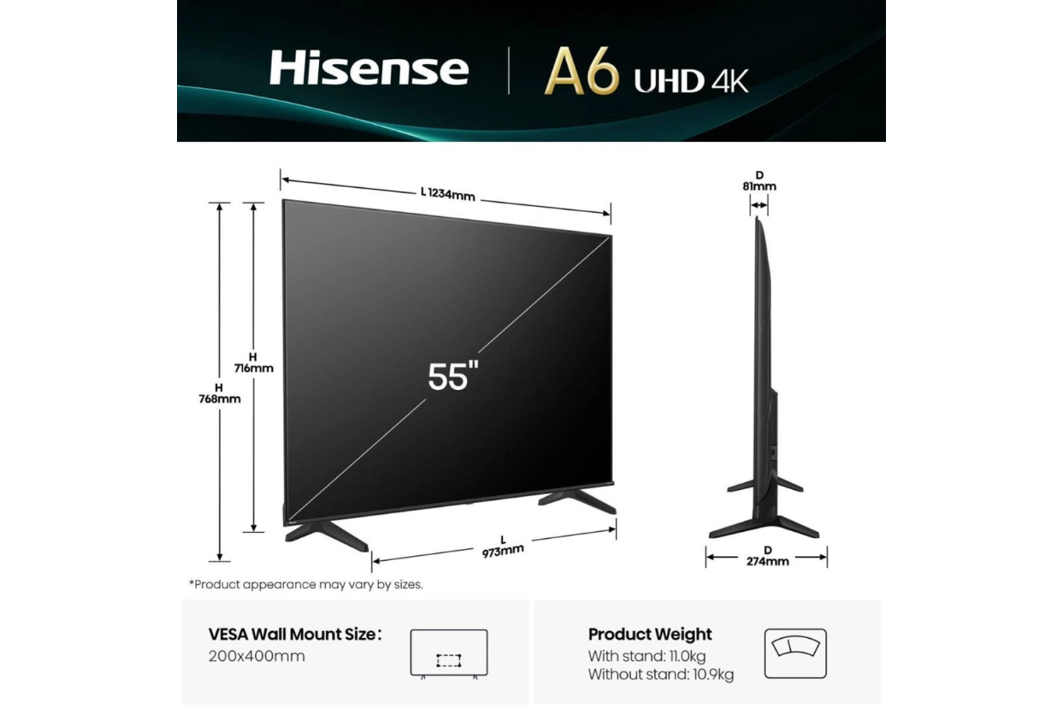 Hisense A6Q 55" LED 4K HDR Smart TV | 55A61Q