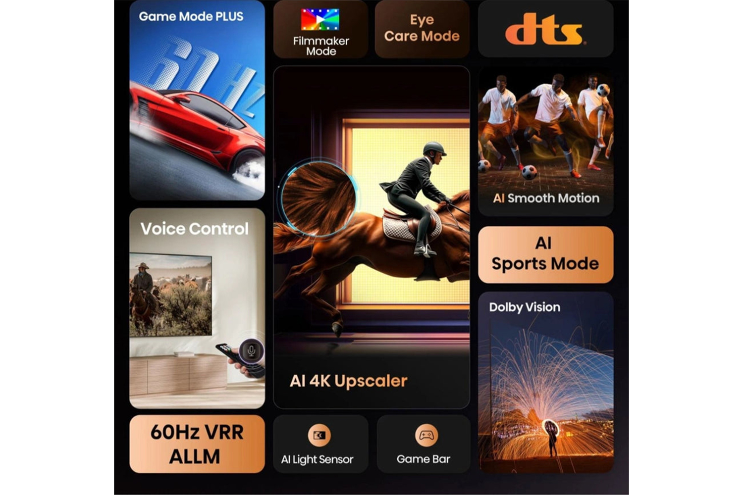 Enjoy smooth, lifelike visuals with advanced features such as MEMC (Motion Estimation, Motion Compensation) and 3D Noise Reduction. With AI Smooth Motion technology, annoying motion blur is a thing of the past. Whether it’s fast-paced sports or intense action gaming, every movement and sudden turn is rendered with crystal-clear precision, ensuring dynamic scenes appear seamless and true to life.