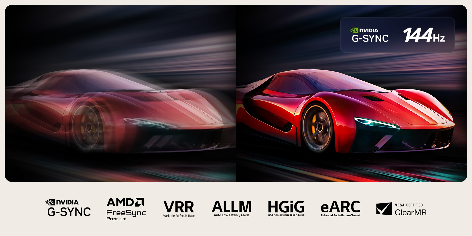 Experience peak gaming with G-Sync compatibility, 144Hz VRR, 0.1ms Pixel Response Time, AMD FreeSync Premium, and ClearMR 9000 certification. Get your game on without lag or motion blur.