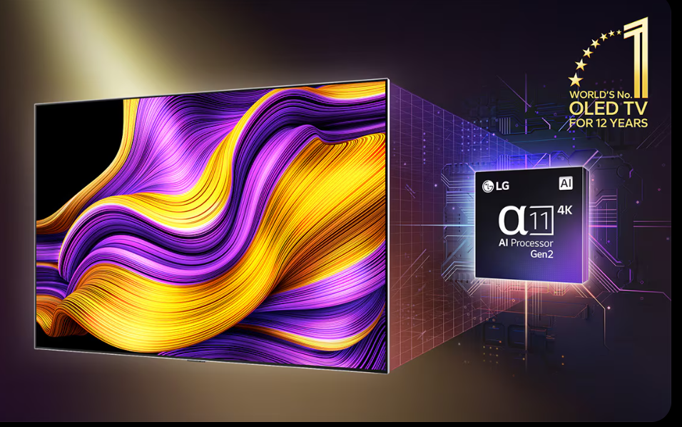 AI Super Upscaling, AI Perceived Object Enhancer, and OLED Dynamic Tone Mapping analyze each frame's elements to enhance resolution, brightness, depth, and clarity.