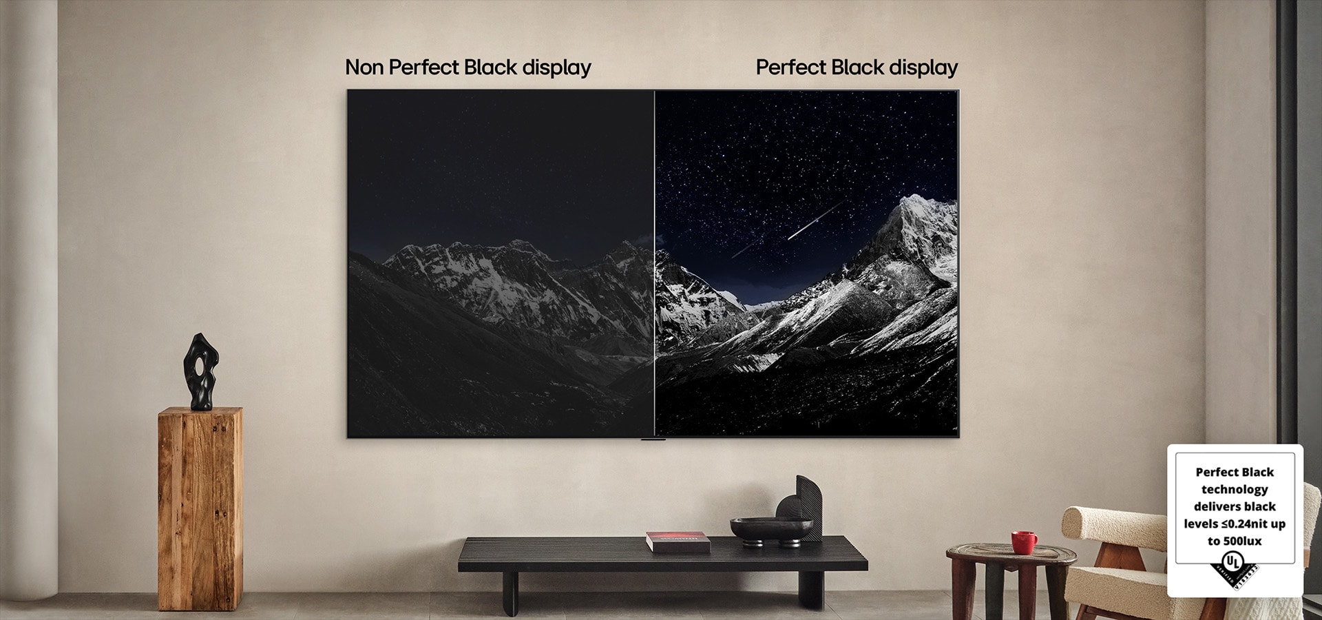 Perfect Black is UL-verified and delivers true black levels to enhance perceived brightness and contrast, whether it's bright or dark around you.