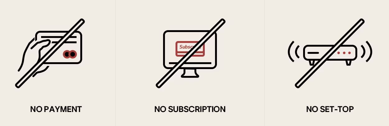 All you need to do is turn it on and start watching without worrying about hidden costs or installing a set-top box.