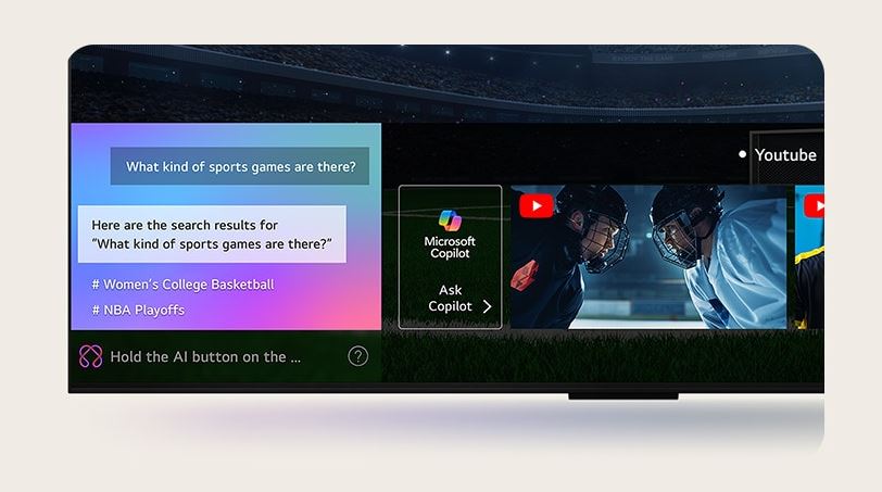 Ask your TV anything. Built-in AI recognizes your voice and quickly provides personalized recommendations for your requests. You can also get additional results and solutions with Microsoft Copilot.