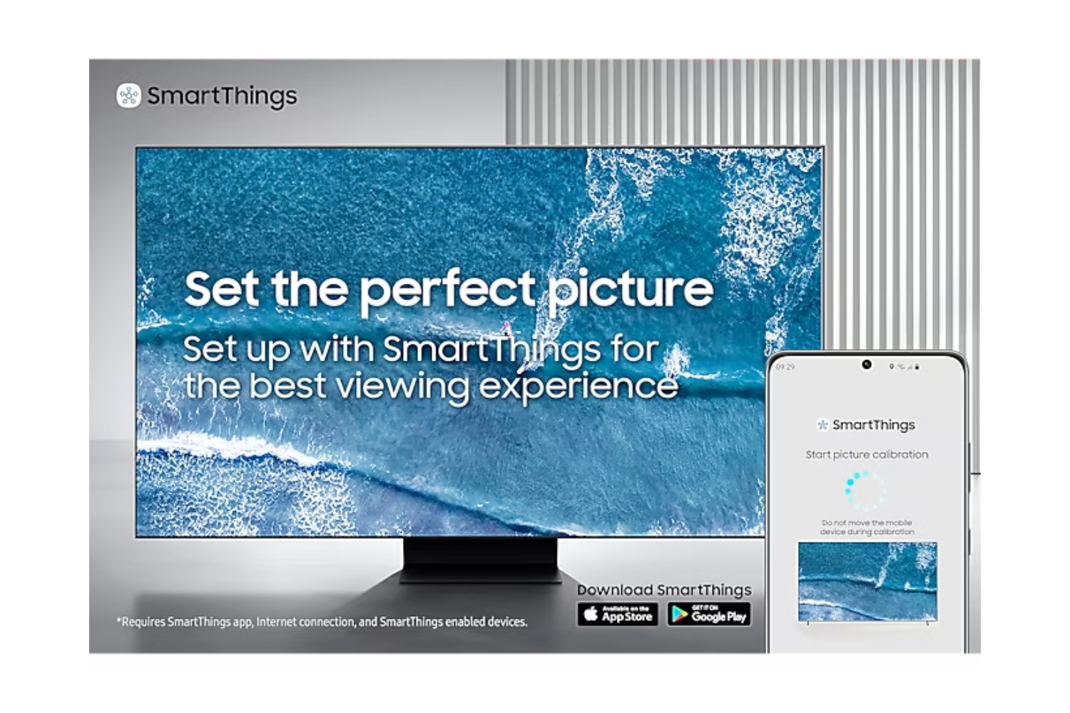 *Internet connection, compatible smartphone and Samsung SmartIhings app required. *"Apple and AirPlay 2 are trademarks of Apple Inc, registered in the U.S. and other countries.