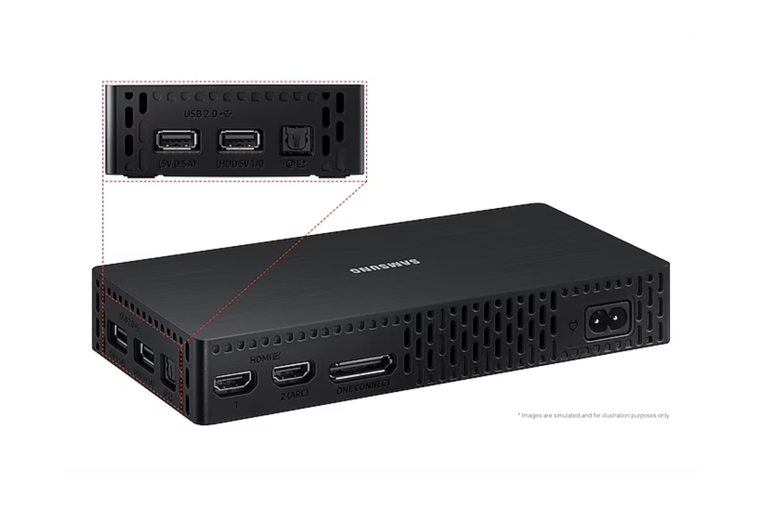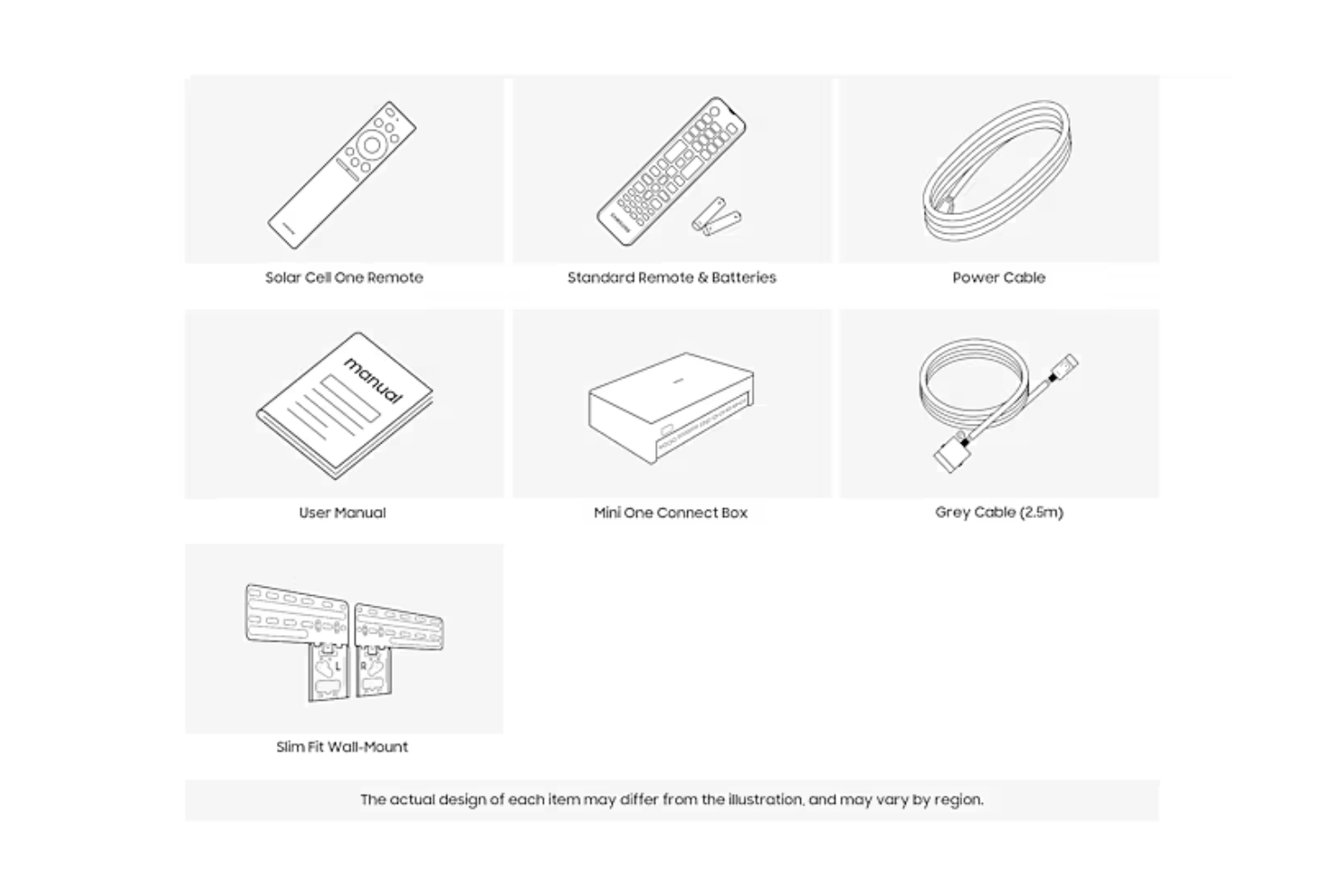 Effortlessly wall mount The Frame near flush to your wall using the Slim Fit Wall Mount, which comes in the box with the TV. You can even plug your multimedia devices* into the Mini One Connect Box, leaving you with a stylish, minimalistic living space to enjoy.*2.5m-long/0.5cm-wide Grey Cable included. Separate tuner cable required.
