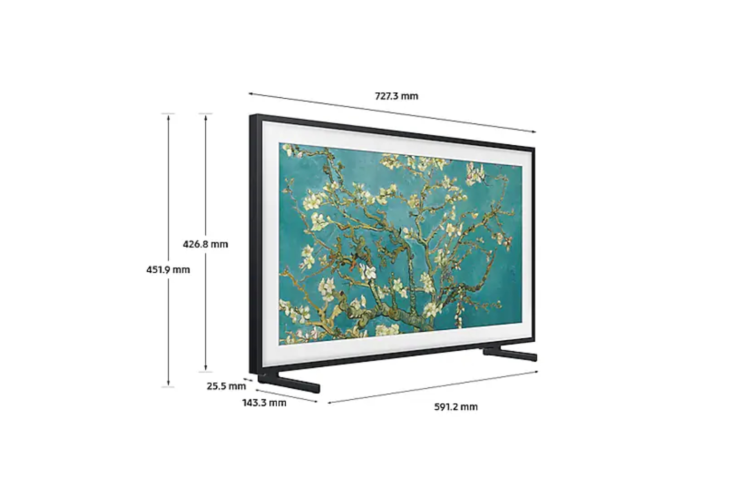 The Frame 32” is a stunningly slim TV that you'll want to watch even when it's off. This elegantly minimal TV with tidy cables even hangs just like a picture frame, near flush to the wall, so it'll blend beautifully with your home.