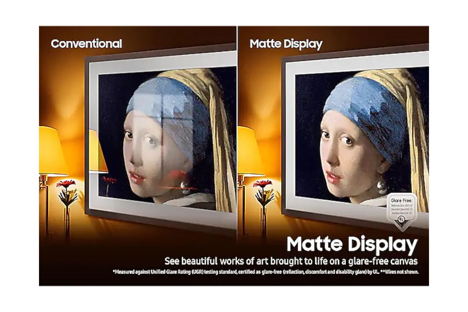 Tired of seeing distracting glare on your TV screen? The Frame's ground-breaking Matte Display overcomes this problem as it absorbs reflections - so even in bright light you'll have the best possible viewing experience. It also helps your TV look just like a picture frame, so you can enjoy beautiful artwork on a glare-free canvas*.