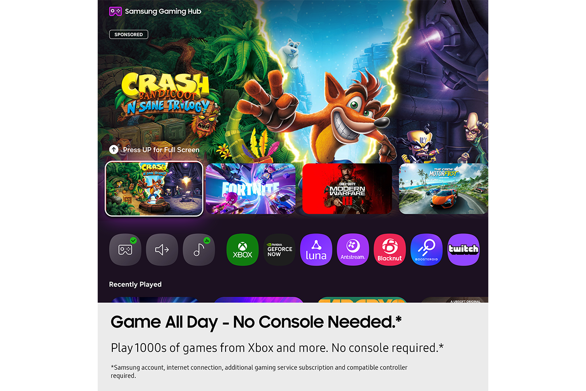 - Gaming Hub – Dive into a vast library of games directly from your TV, featuring Xbox and other leading gaming platforms, without the need for a console.