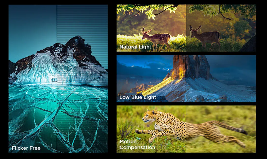 Al Motion detects fast-moving objects sensitively, it calculates motion in terms of refresh rate and frame number, just to restore the silky-smooth image. in compensating for blurring and tearing.