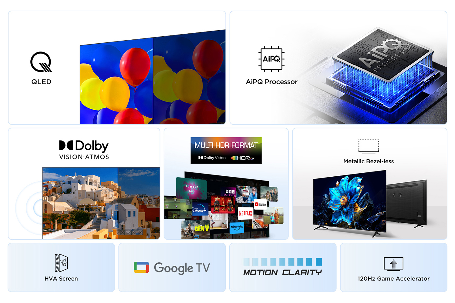 TCL's self-developed AIPQ Processor, incorporates numerous TCL's unique image quality tuning algorithms. This chip has excellent intelligent sensing capabilities and can make pixel-level adjustments to the image quality, thus providing a top-notch viewing experience.