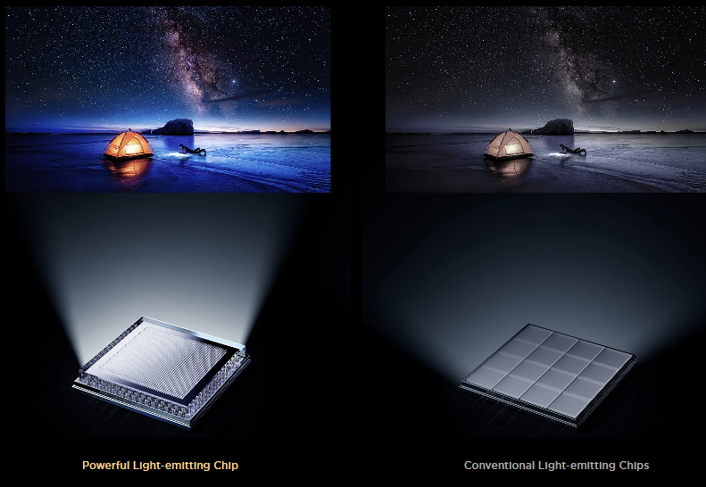 Compared with the previous generation of conventional light-emitting chip, C6K's ground-breaking Powerful Light-emitting Chip significantly improves brightness and energy efficiency, reproducing natural bright and dark scenes with clarity.