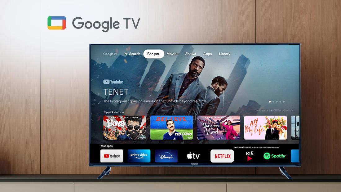 With a little help from Google. Telefunken Google TV brings together movies, shows and more from across your apps and subscriptions and organizes them just for you. Integrated Google Assistant offers quick and helpful support and makes operating simple thanks to voice control.