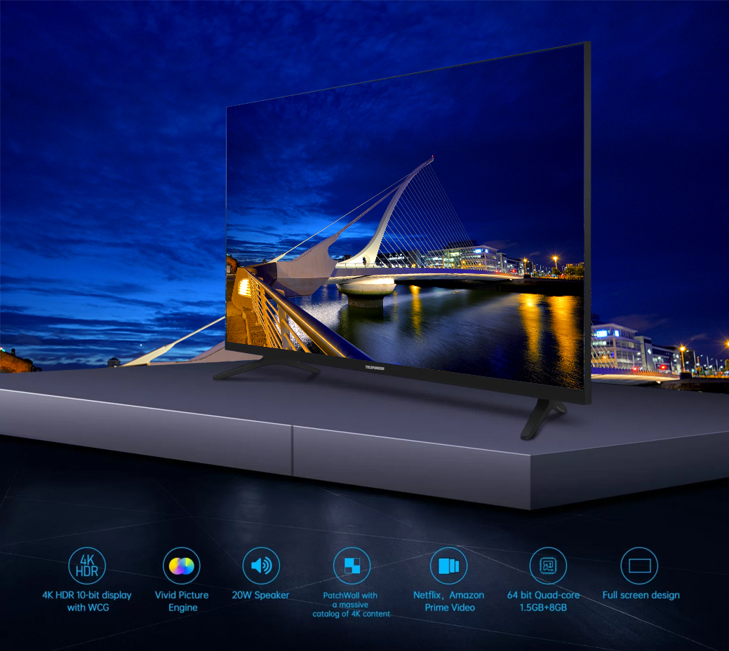 Fuelled by the dynamic Vivid Picture Engine, Telefunken display brings forth unparalleled precision in color accuracy and vibrancy. Experience the true-to-life visuals with 4K HDR, where infinite contrast, striking luminance, and unrivaled color rendering combine to recreate images that are remarkably lifelike.