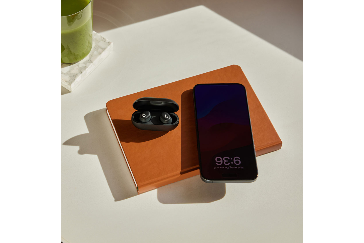 1. Testing conducted by Apple in April 2024 using preproduction Beats Solo Buds units and software paired with iPhone 15 Pro units and pre-release software. The playlist consisted of 358 unique audio tracks purchased from the iTunes Store (256-Kbps AAC encoding). Volume was set to 50%. Testing consisted of full Beats Solo Buds battery discharge while playing audio until the first unit of Beats Solo Buds stopped playback. Battery life depends on device settings, environment, usage, and many other factors.