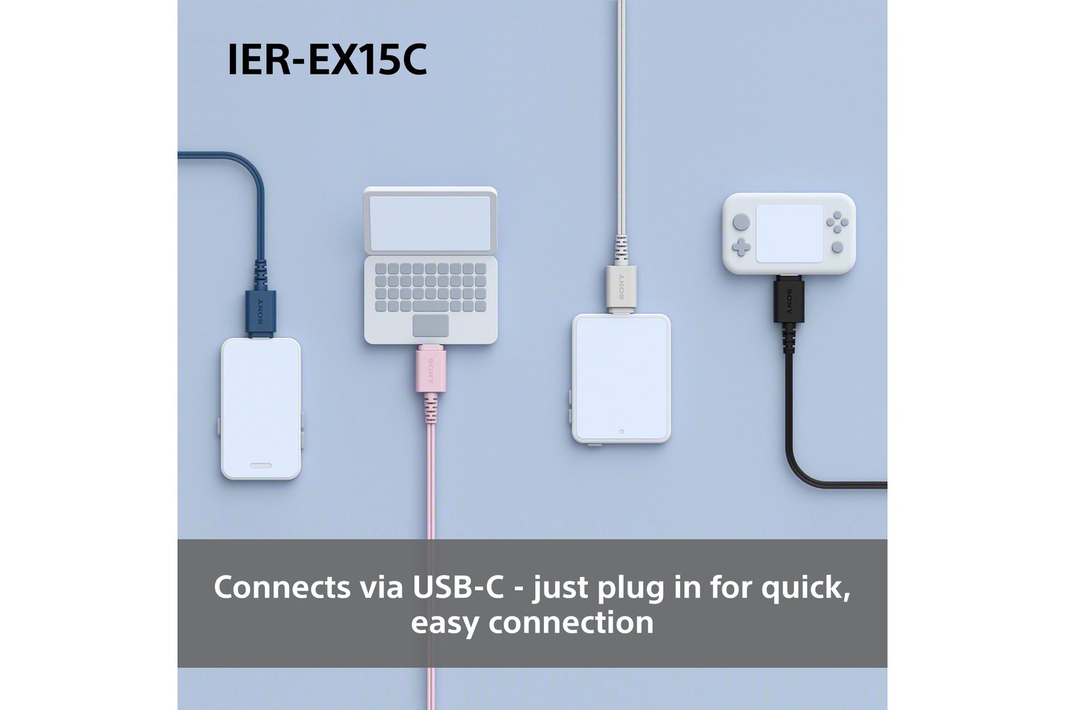 The Sony IER-EX15C connects via USB-C, so it's ready for the latest smartphones, tablets and laptops, with no adapter needed. Just plug in and press play.