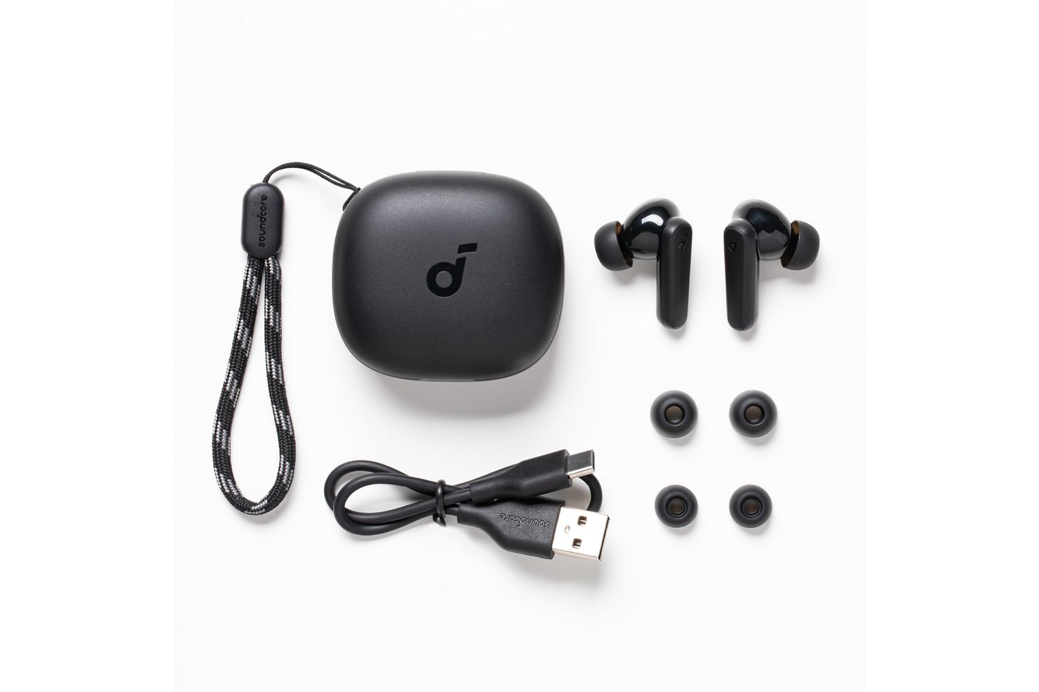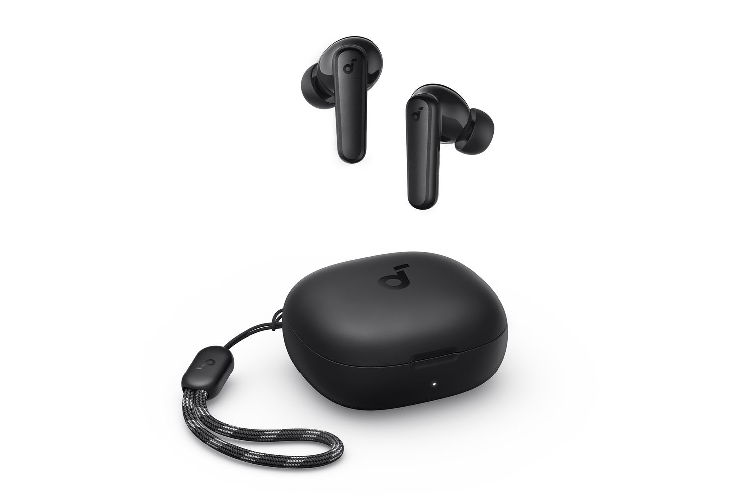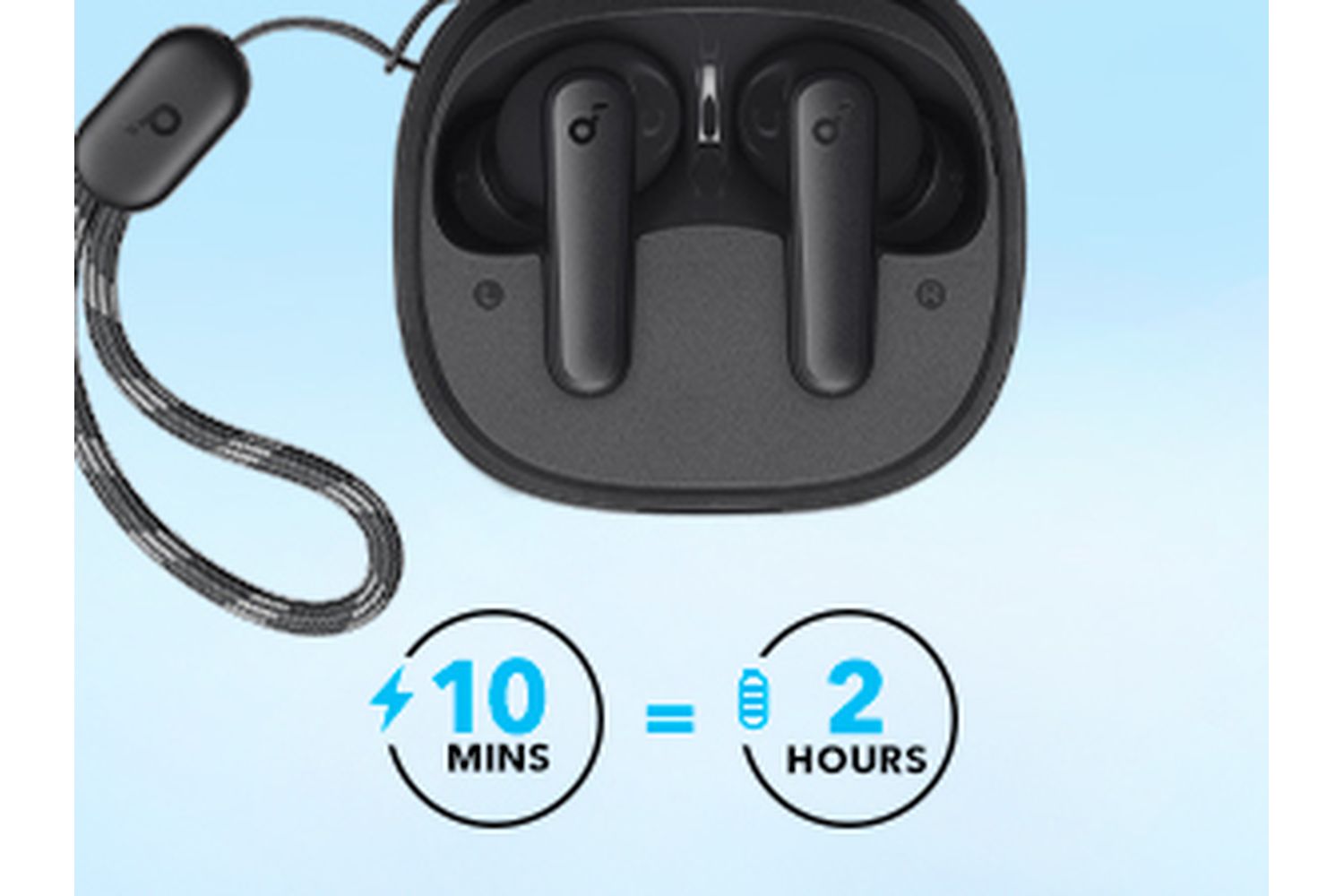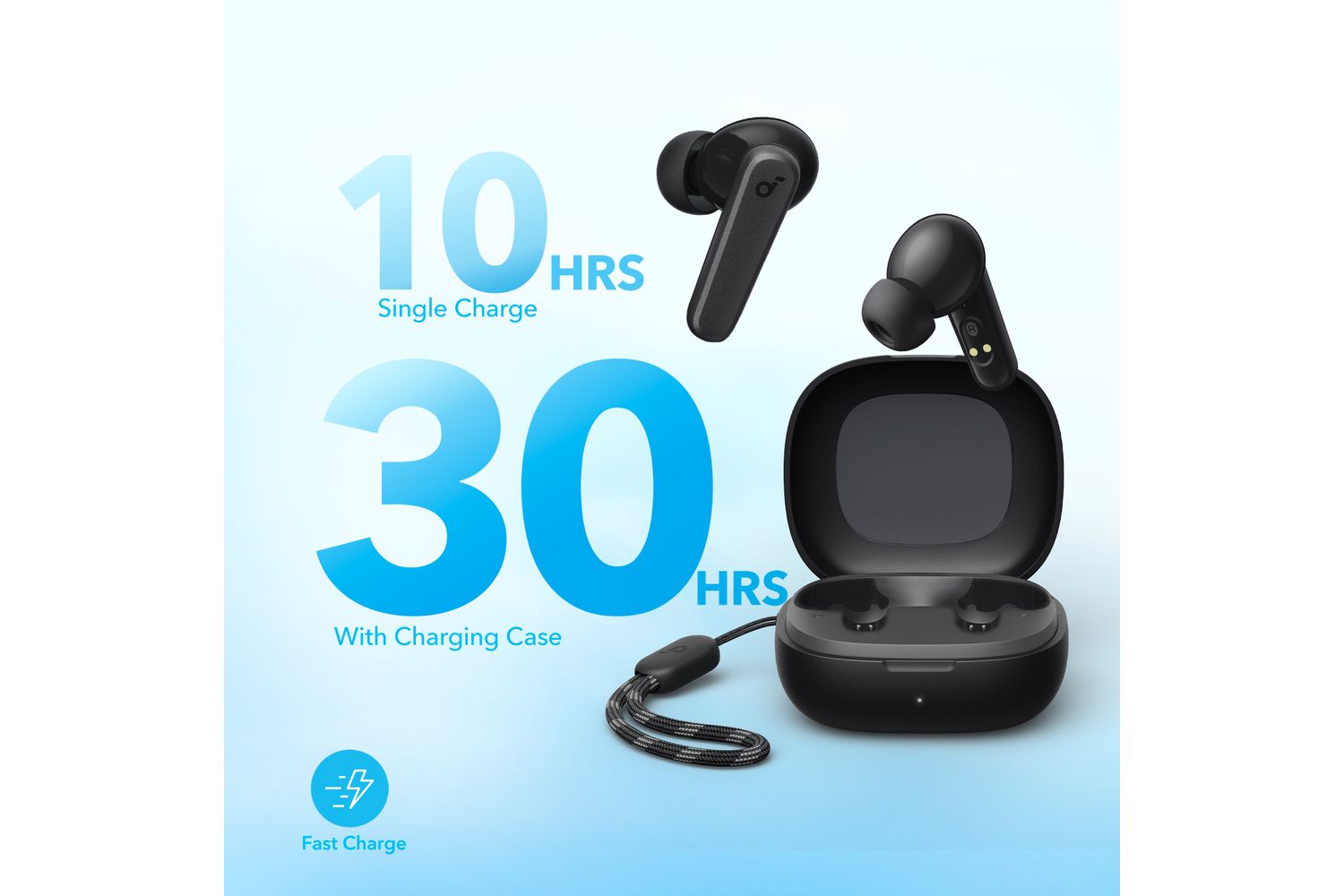 - On-the-go compact design with detachable lanyard on charging case