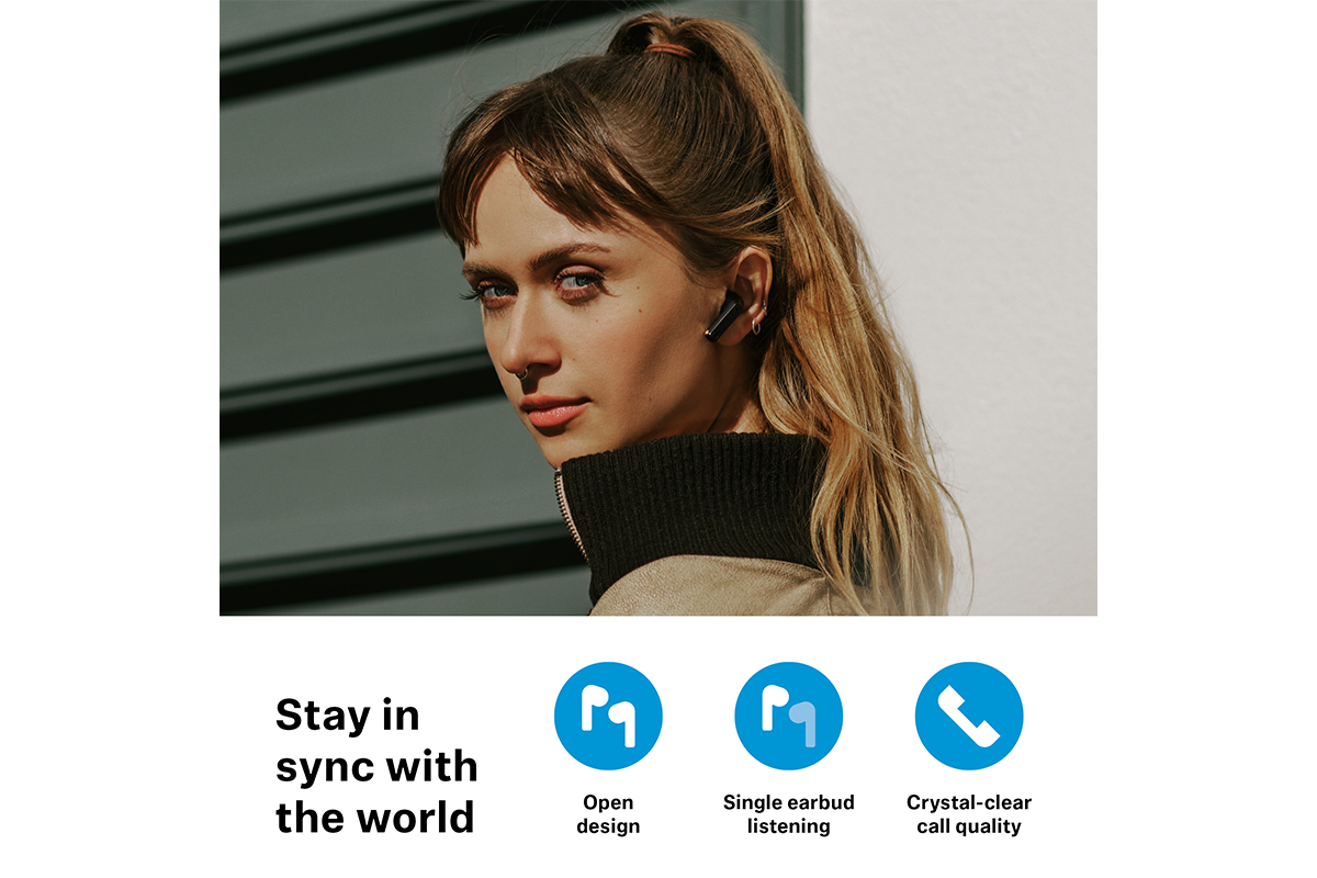 Flexible, reliable, and always in sync with your life. The open earbud design keeps you tuned into your surroundings – whether you're chatting with friends, staying alert to traffic, or just soaking up the vibes. Your sounds, your choice. Rock both ACCENTUM Open earbuds or just one if you want to stay aware of what's happening around you. Perfect for social butterflies!