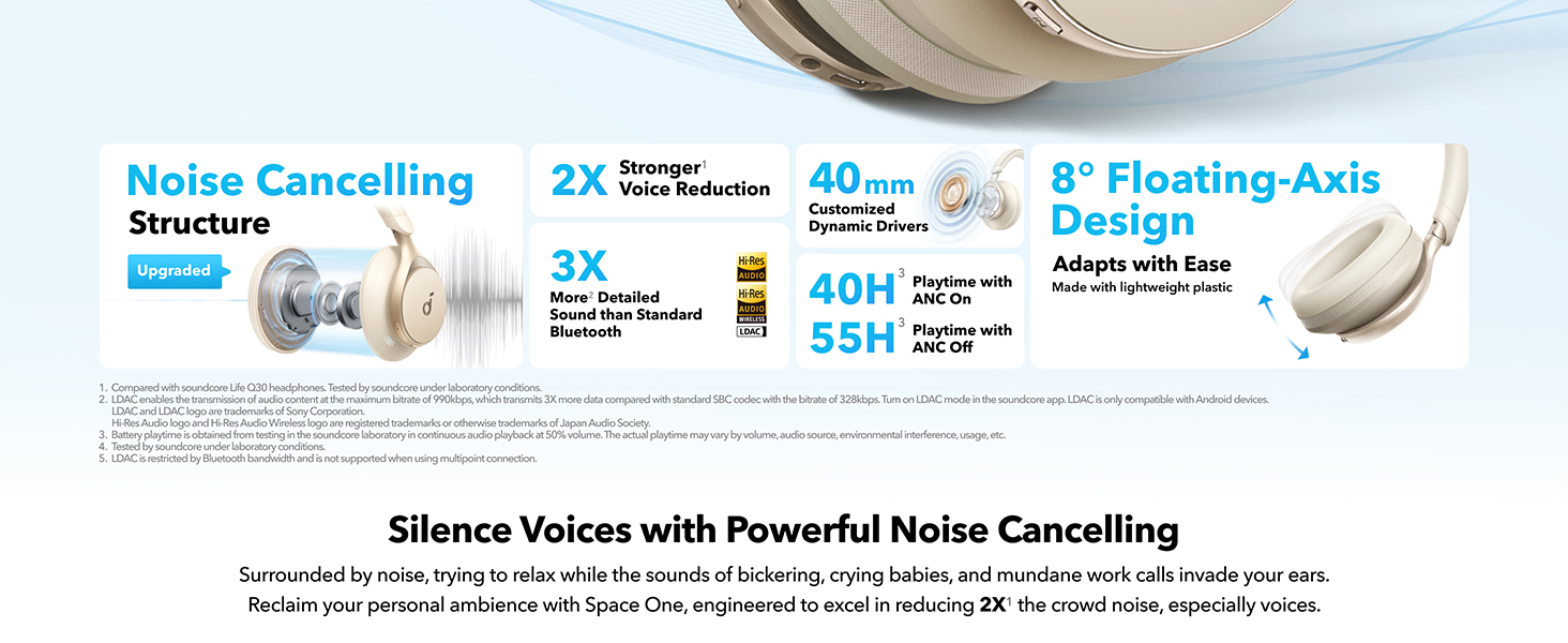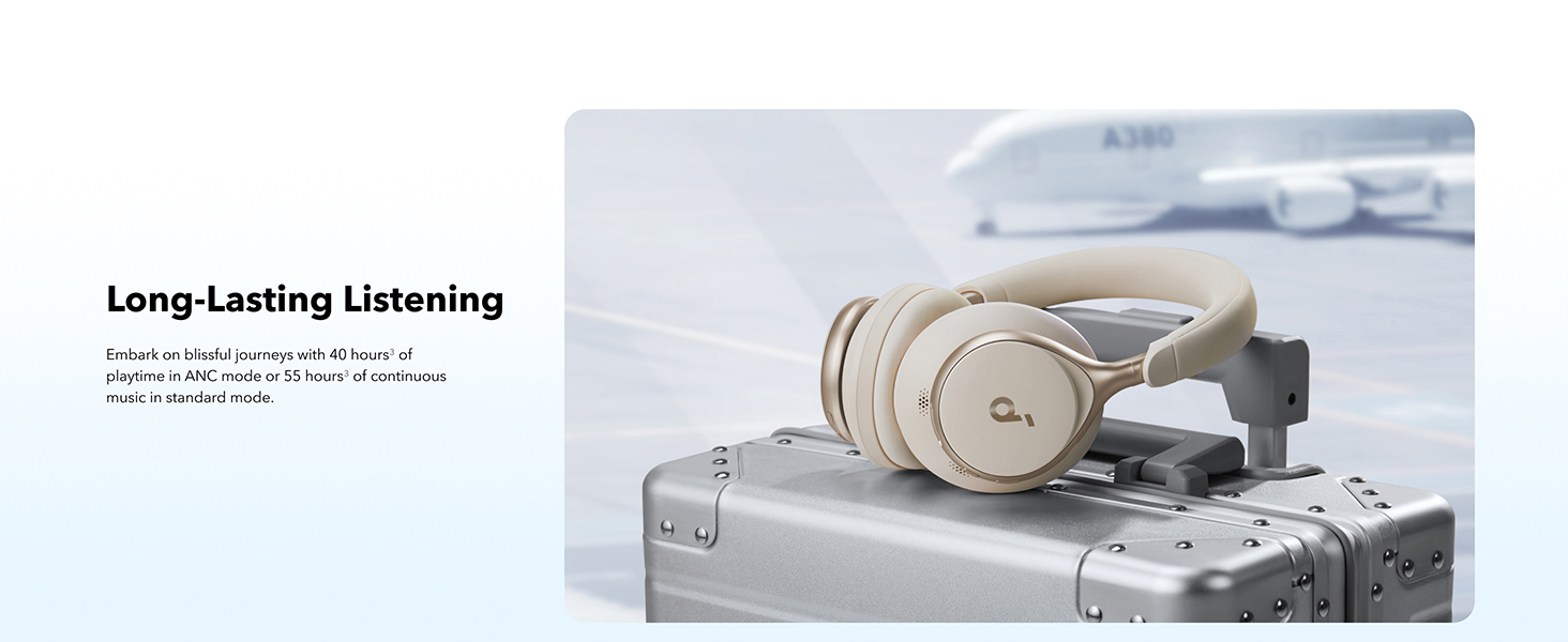 • Worry-free battery (40H ANC on, 55H ANC off)