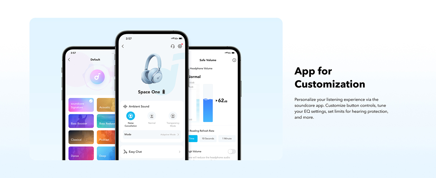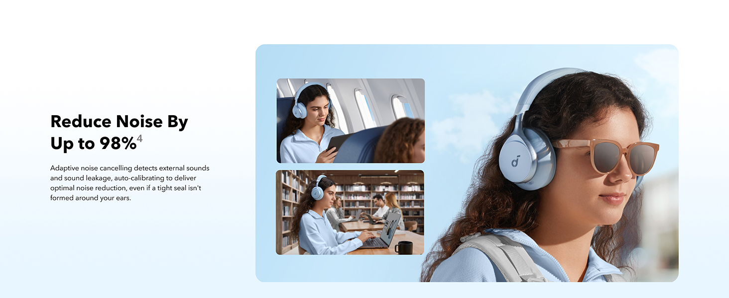 • Reduce noise by up to 98%* with adaptive noise cancelling *Tested by soundcore under laboratory conditions