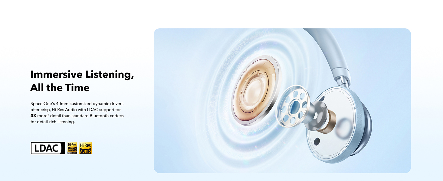 • Crisp, Hi-Res sound via 40mm dynamic drivers