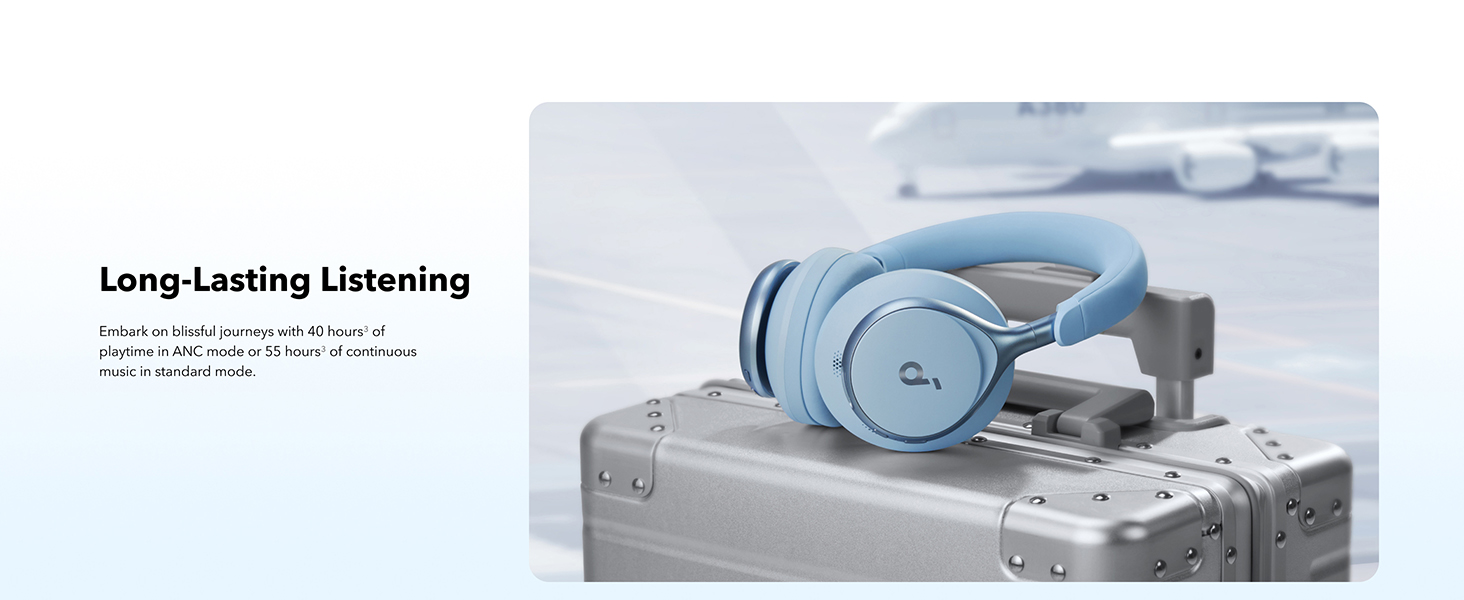 • Worry-free battery (40H ANC on, 55H ANC off)