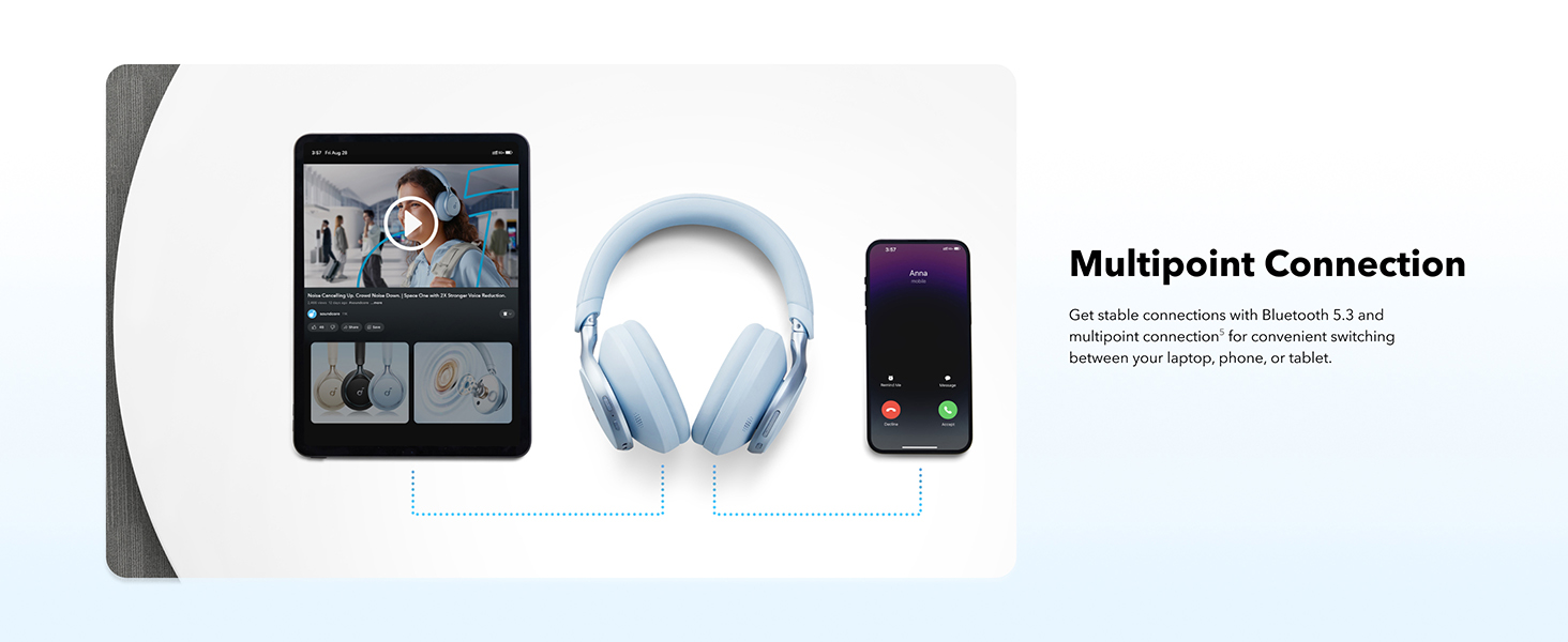 Soundcore Space One Over-Ear Wireless Active Noise Cancelling Headphones | Sky Blue