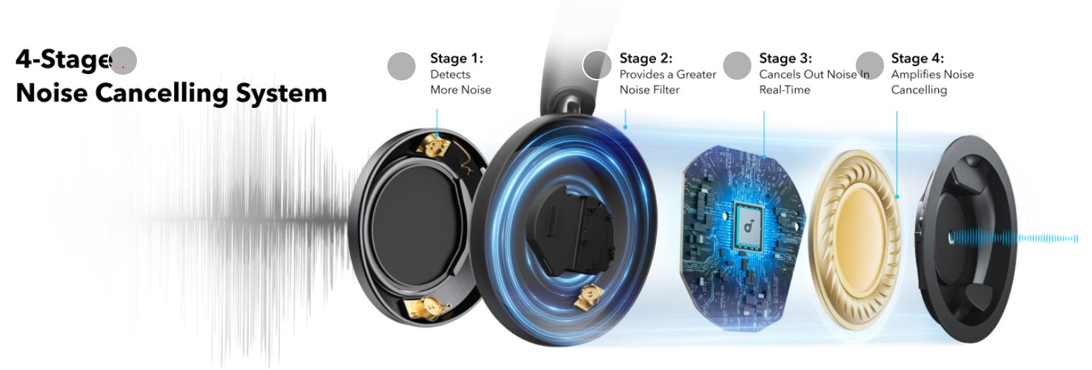 • Exclusive 4-stage noise cancelling system: Cancels out on-the-go noise in real time