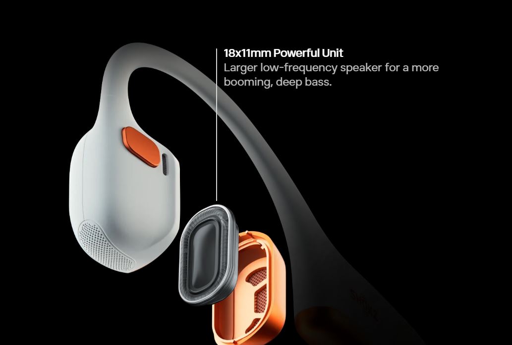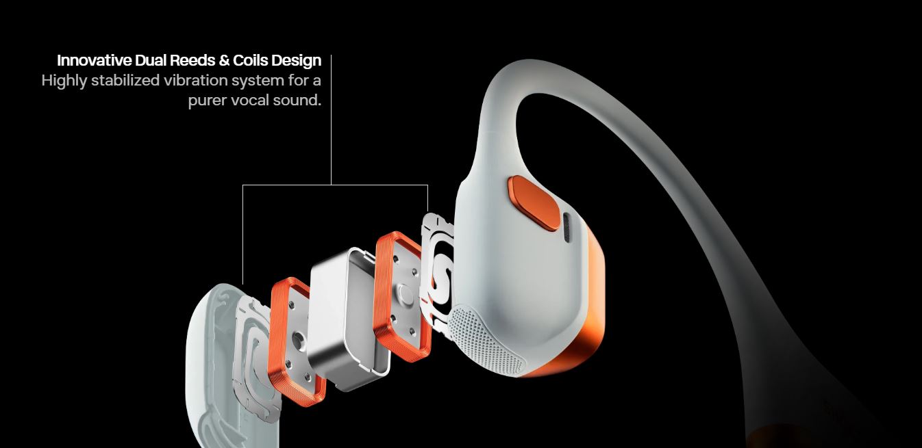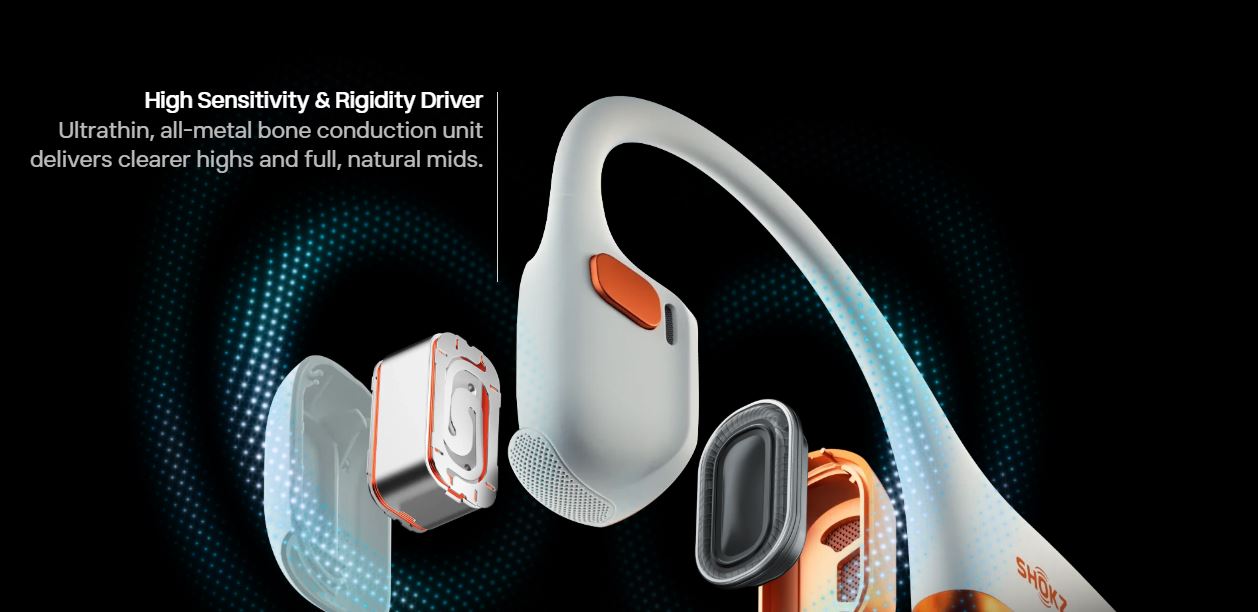 Ultrathin, all-metal bone conduction unit delivers clearer highs and full, natural mids.
