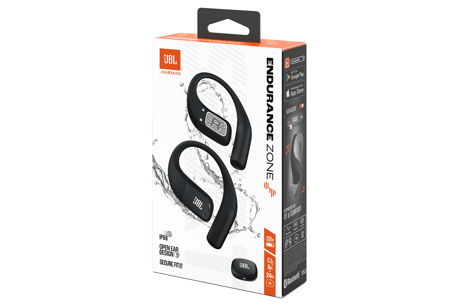 The dynamic sound, all-day comfort, and rugged design of JBL Endurance Zone earbuds will inspire you to reach for your physical limits and beyond. JBL OpenSound technology fuels your workout with punchy sound from a perfect listening angle that keeps your ears free, but aware of the surroundings. And there's minimal sound leakage—because the person on the next yoga mat over doesn't need to hear what you're listening to. The comfortable, lightweight design keeps you going for hours, while the secure ergonomic earhook curve and rainproof, dustproof, and sweatproof design lets you exercise as long and as hard as you like, in even the wettest weather. Stay motivated with up to 32 hours of combined battery life. These earbuds are serious workout gear, designed for your hardest workouts.