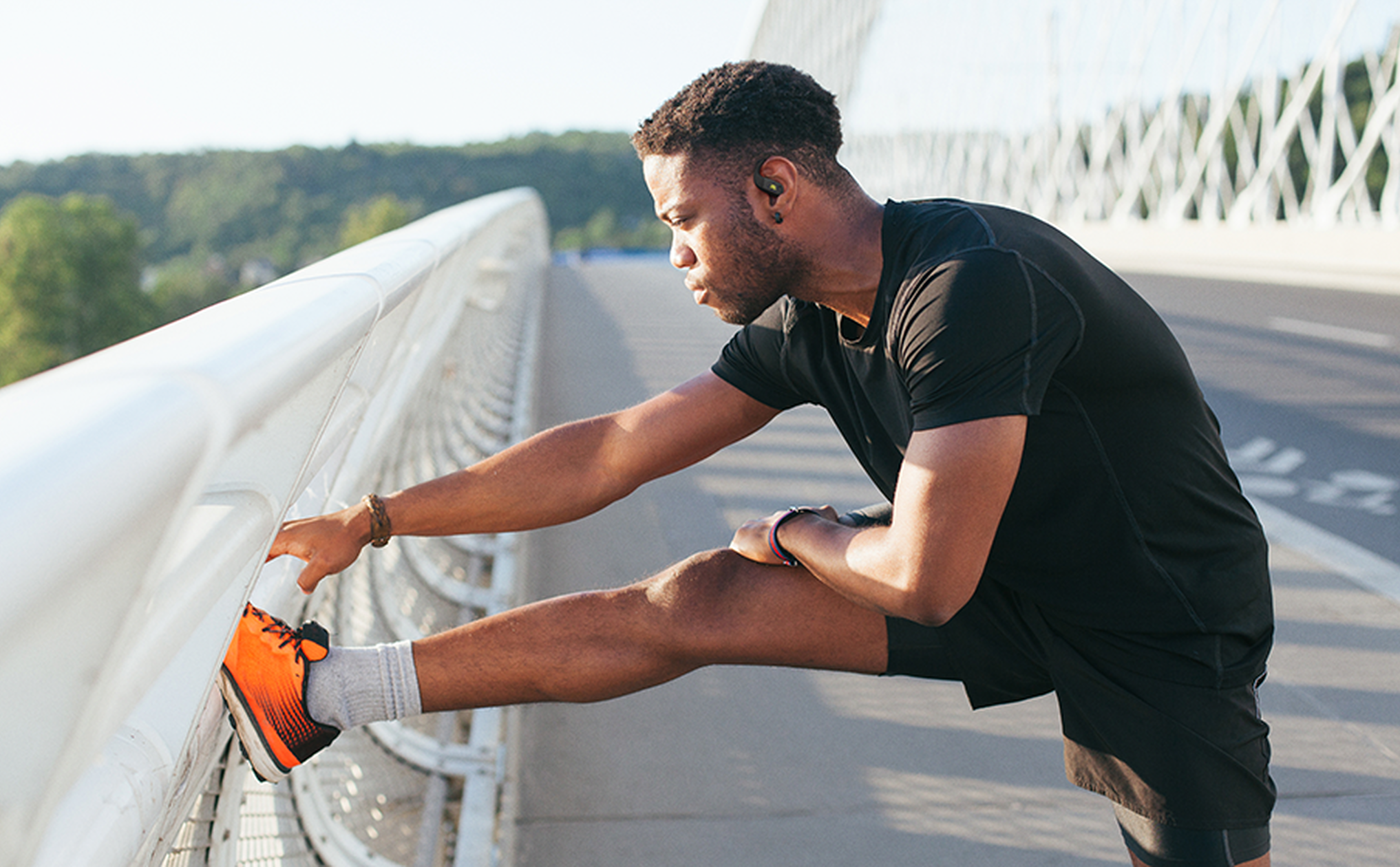 Both the earbuds and the charging case are made from a rugged, scratch-resistant material. They're also easy to grip, even after a sweaty workout, so they won't go flying when you take them out. And no matter how many times you adjust them, the rugged earhook resists stretching and twisting, so they'll always fit like new.