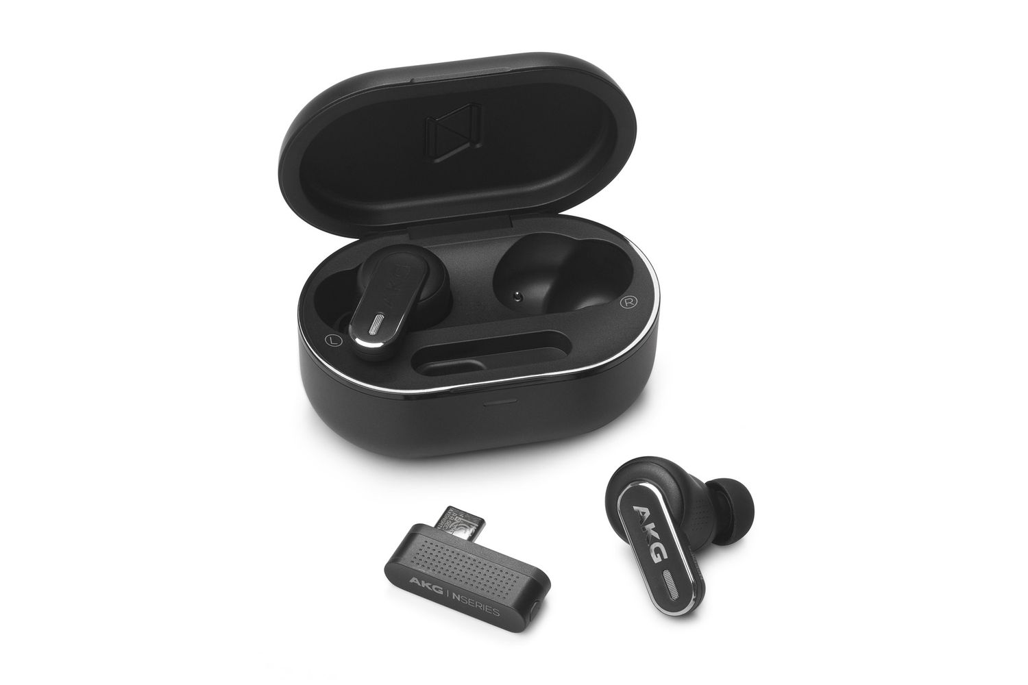 Every akg N5 hybrid ANC true wireless box ships with a USB-C dongle and a USB-A adapter, giving you the freedom to connect your headphones without having to charge or worry about tangling cables, along with the charging case and a user manual. Experience high-quality sound from a brand that understands what makes an authentic sound, the akg N5 hybrid in-ear headphones. Perfect sound without the hassle.