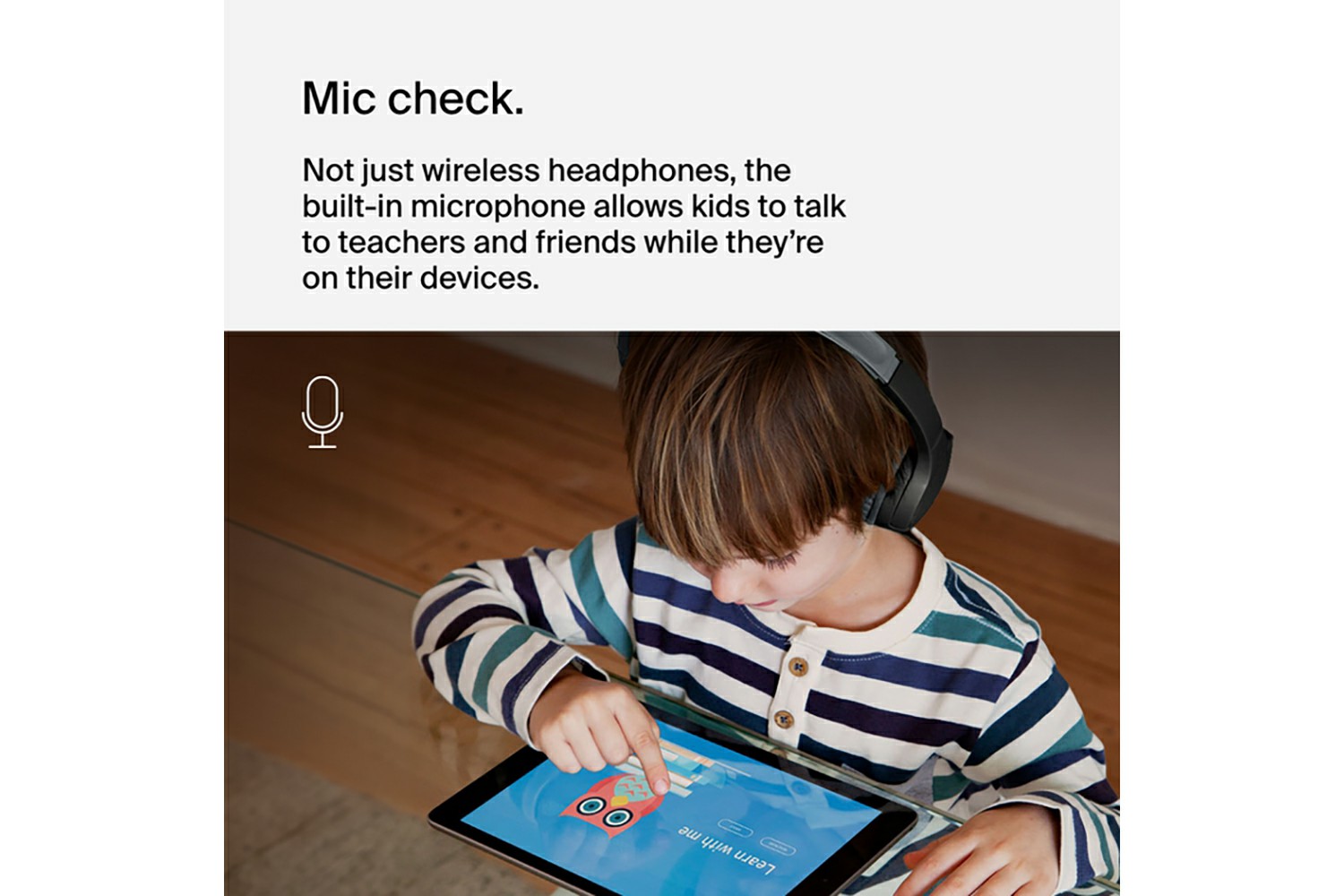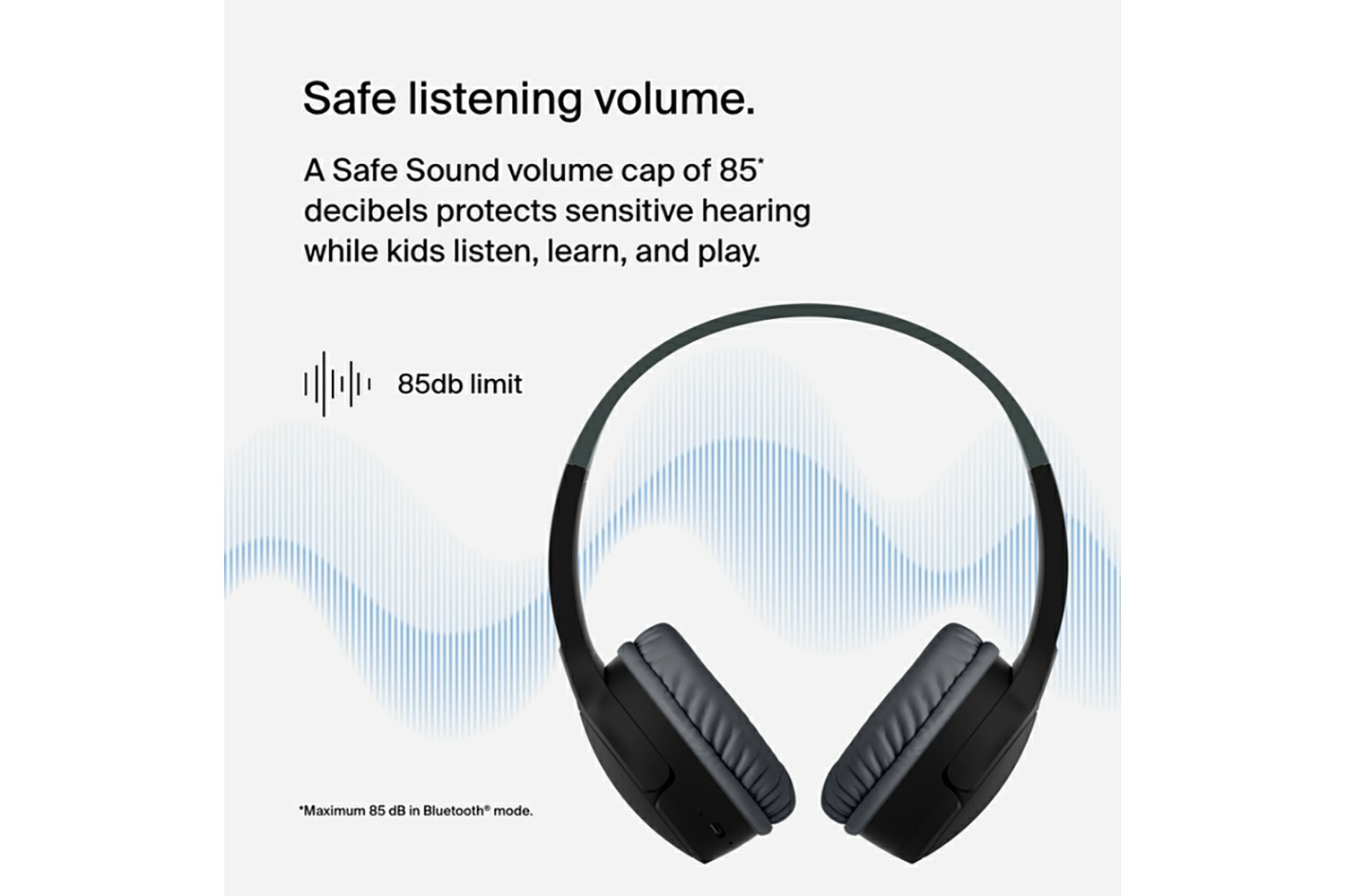 Perfect for distance learning, long car rides, and keeping them entertained, these on-ear headphones have been designed with kids in mind. A volume cap of 85dB* protects young ears, and extended battery life keeps them listening all day long.