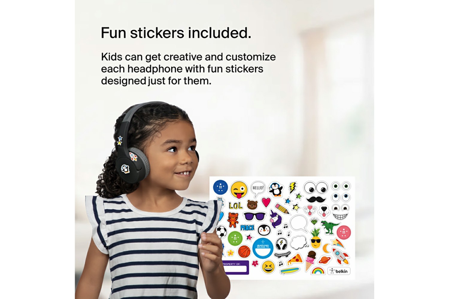 Kids can get creative and customize each headphone with fun stickers designed just for them.