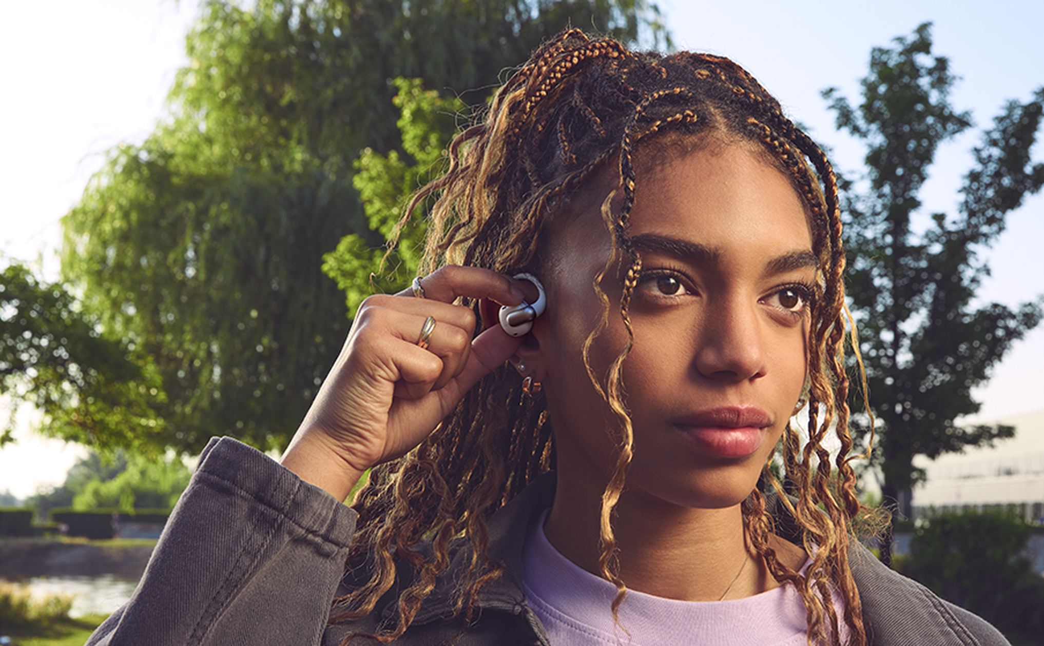 JBL Sense Pro headphones rest comfortably on the curve of your ear, not in your ear canal, so you'll always hear the world around you. At the same time, the sound is directed straight into your ears, so no one can hear your music or calls, even if they're standing right beside you on the subway. Meanwhile, JBL Spatial Sound makes the audio feel like it's enveloping you with stereo content from any device.