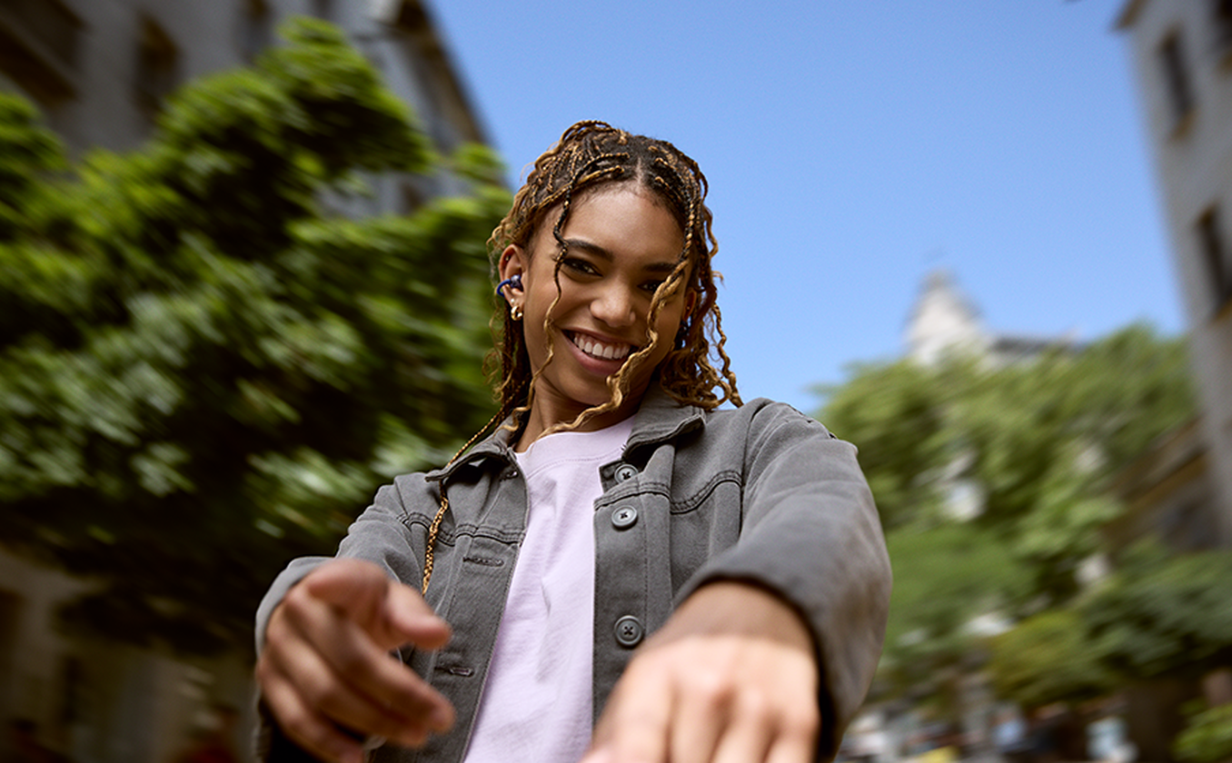 Use the JBL Headphones app to choose between using one or both of the beamforming mics in each earbud. (It'll depend on how you wear them on your ear: experiment and see what works for you.) In either case, the JBL Soundgear Clips boast an Al-trained algorithm that reduces environmental noise so you'll always sound clear, even if you're talking outside on a breezy day.