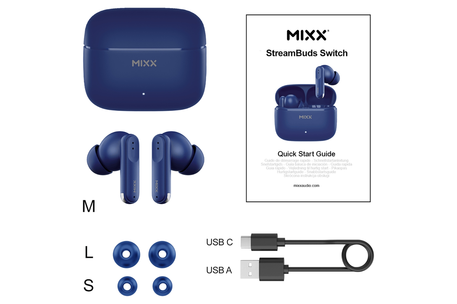 Experience wireless freedom and all-day comfort with the MIXX StreamBuds Switch S7 True Wireless Earbuds. Designed for a snug and secure fit, these soft silicone in-ear headphones come with three pairs of ear cushions (small, medium, and large) to suit your ears perfectly. Whether you're on the move, working, or relaxing, the ergonomic design stays put while delivering crystal-clear audio. Powered by Bluetooth 5.4, these earbuds offer stable, efficient wireless connectivity for music, podcasts, and hands-free calls. Get up to 6 hours of playtime from a single charge, with an additional 12 hours stored in the sleek, pocket-sized USB-C charging case. And when you're running low, a 15-minute quick charge gives you 2 hours of extra listening—ideal for busy lifestyles.