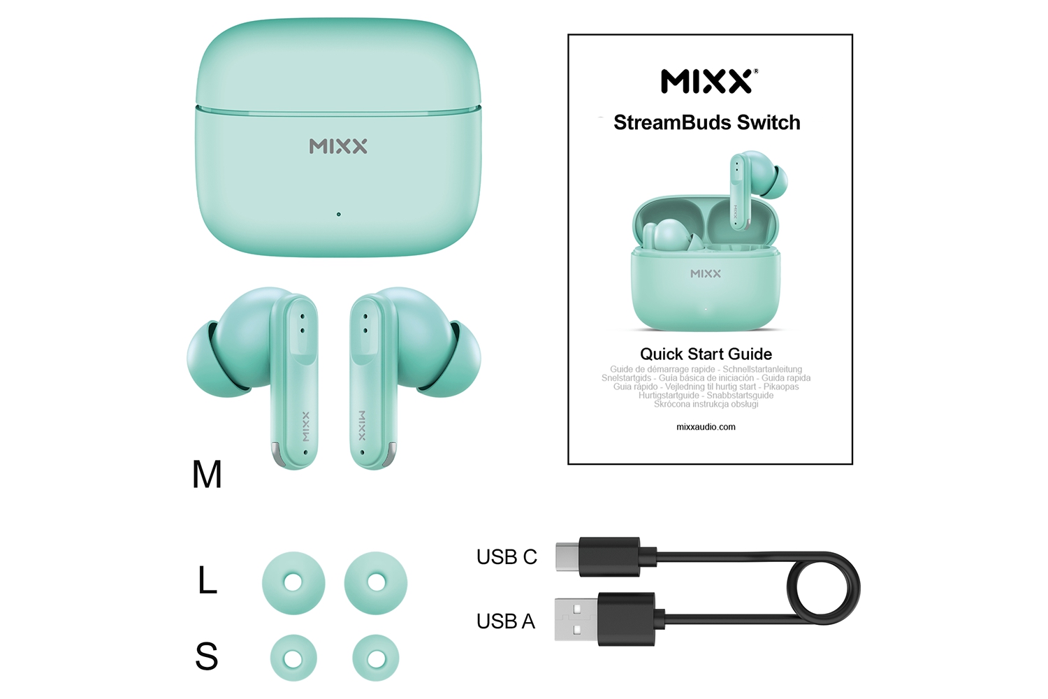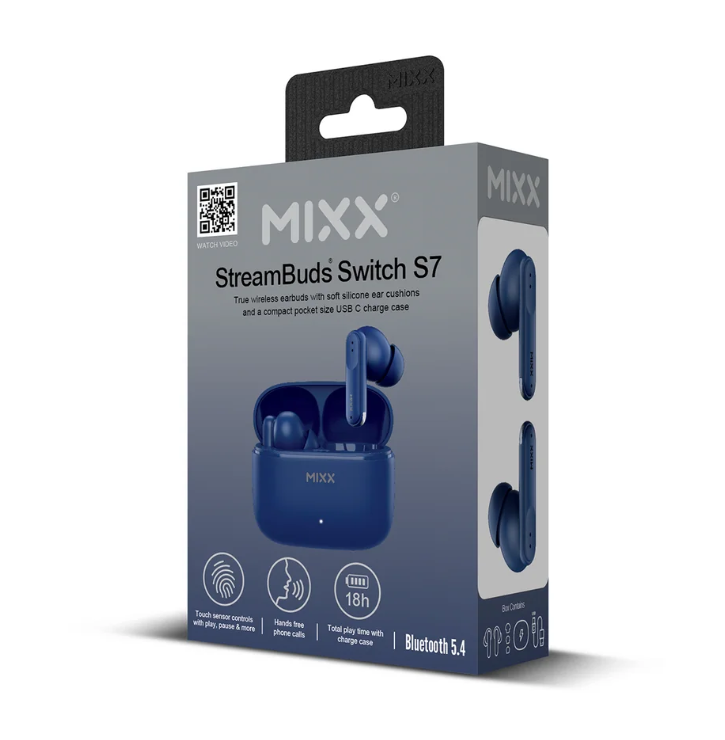 Experience wireless freedom and all-day comfort with the MIXX StreamBuds Switch S7 True Wireless Earbuds. Designed for a snug and secure fit, these soft silicone in-ear headphones come with three pairs of ear cushions (small, medium, and large) to suit your ears perfectly. Whether you're on the move, working, or relaxing, the ergonomic design stays put while delivering crystal-clear audio. Powered by Bluetooth 5.4, these earbuds offer stable, efficient wireless connectivity for music, podcasts, and hands-free calls. Get up to 6 hours of playtime from a single charge, with an additional 12 hours stored in the sleek, pocket-sized USB-C charging case. And when you're running low, a 15-minute quick charge gives you 2 hours of extra listening—ideal for busy lifestyles.