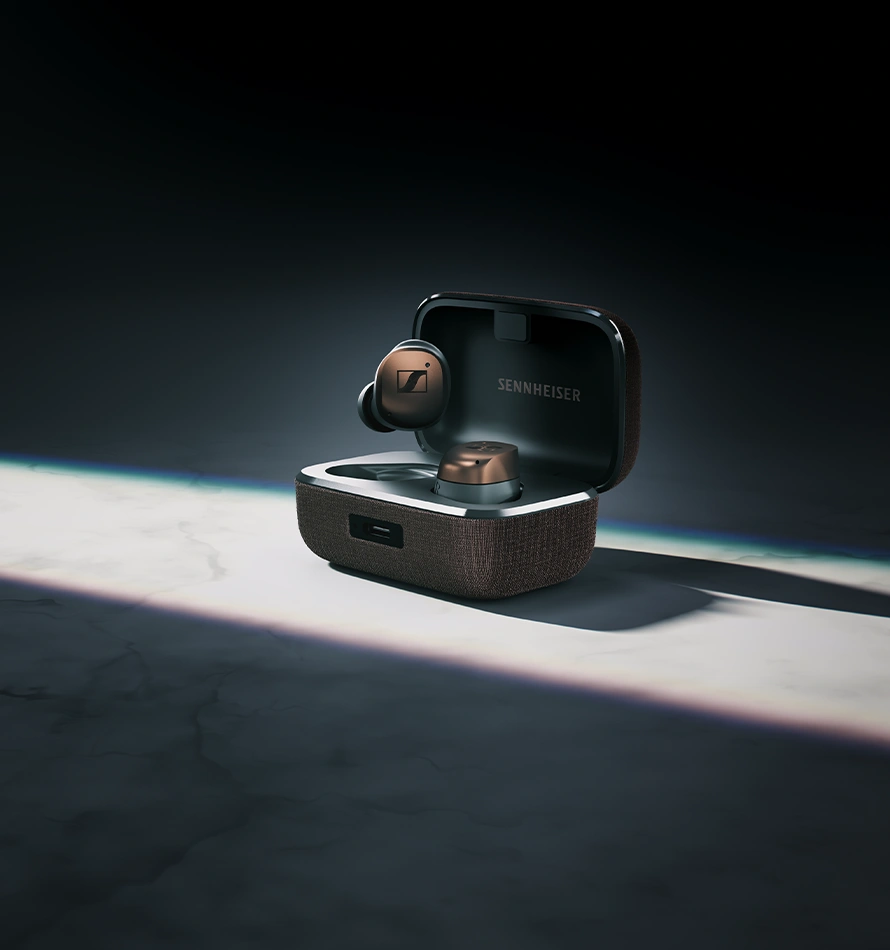MOMENTUM True Wireless 4 matches progressive features with timeless, finely crafted design and Sennheiser quality. Available in Black Graphite, White Silver, and Black Copper, their minimalist aesthetic is elevated by premium material such as textile and metallic finishes. Enjoy a truly special listening experience in style.