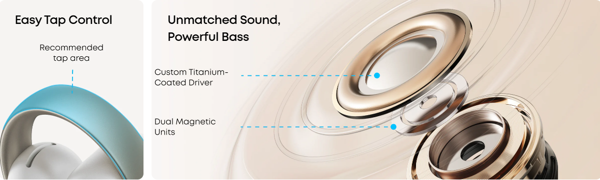 Enjoy ultra-clear, rich bass sound with in-ear-level quality. Soundcore advanced virtual bass technology enriches the lows, complemented by a 12mm*12mm titanium-coated driver for clear listening.