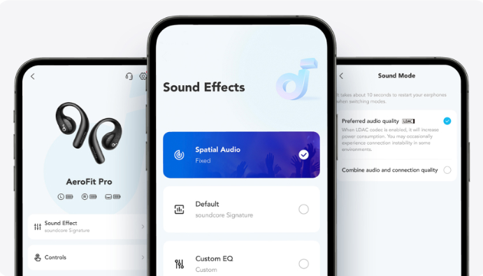 Create your own listening experience with the soundcore app. Activate Spatial Audio, LDAC mode, and customize button controls and EQ settings.