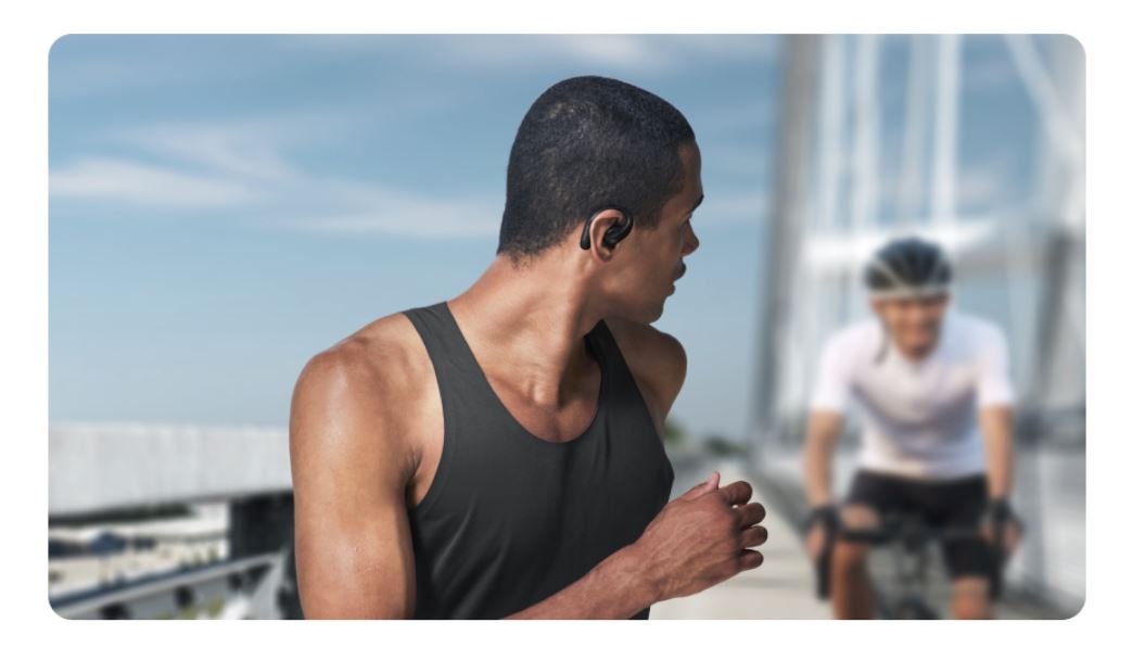 AeroFit Pro lets you stay connected with the world around you thanks to its open-ear design. Stay safe when working out or going for a quick run.