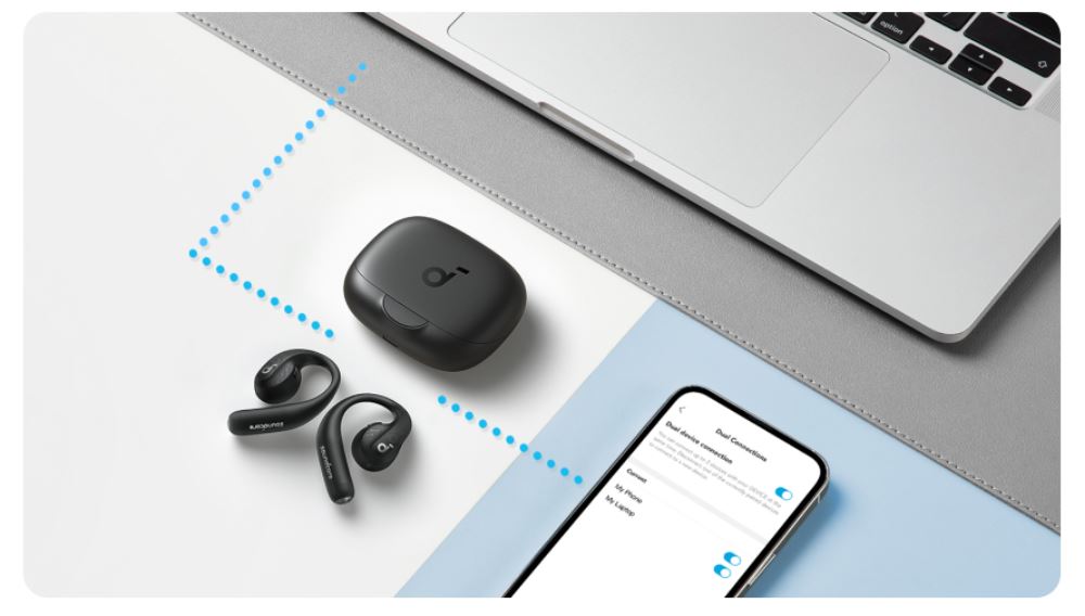 AeroFit Pro supports dual connection allowing simple switching between two devices with the soundcore app.