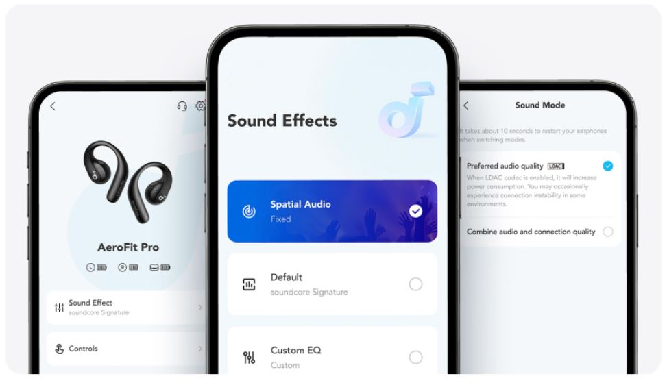 Add true depth to your listening with LDAC technology. AeroFit Pro transmits 3X more data than regular Bluetooth for unreal audio quality.