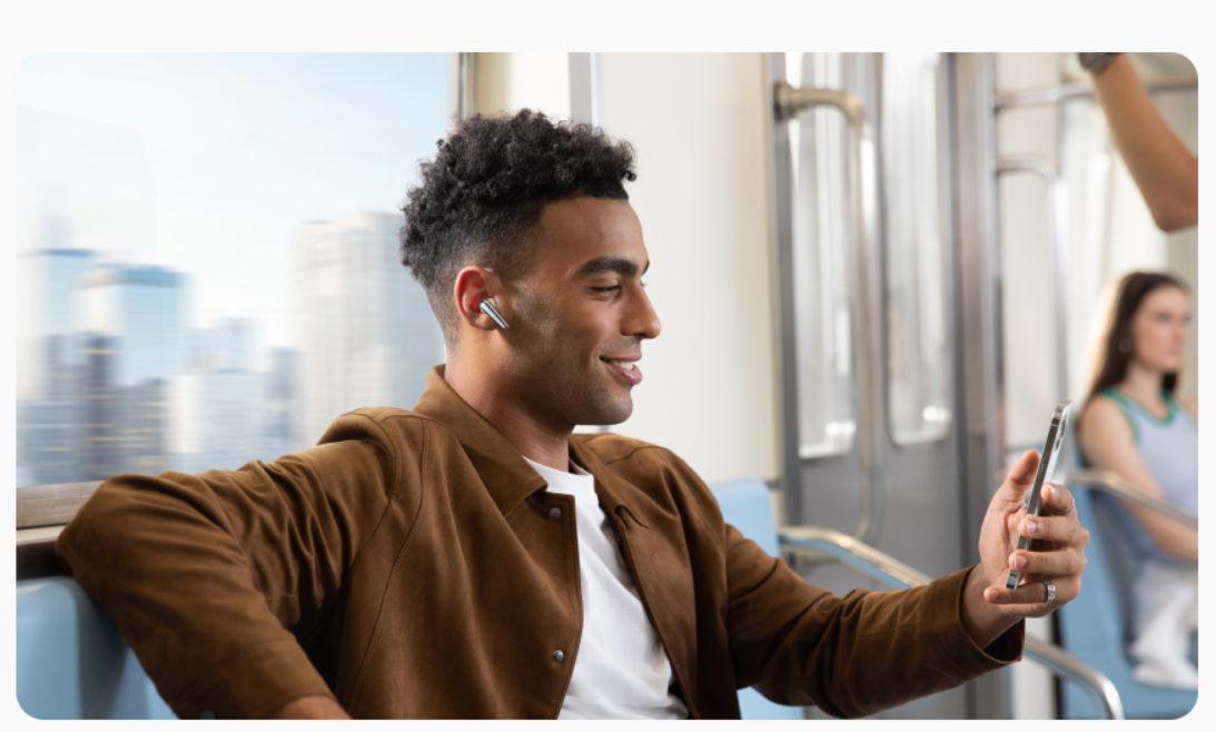 Even in bustling trains, your voice stands out in calls with noise muted, thanks to our 6 mics and Al noise reduction. Plus, EasyChat lets you talk face to face with no hassle.