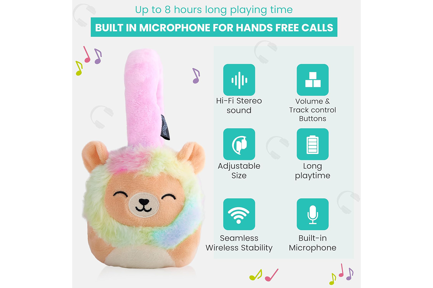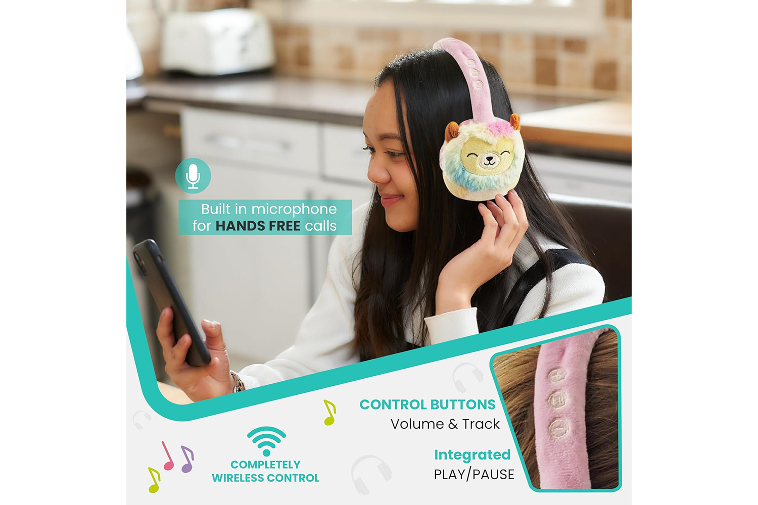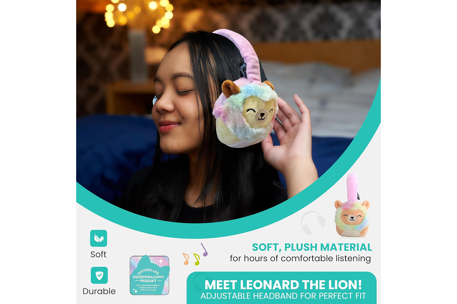 Add to your Squishmallows Squad with these cute, plush Leonard the Lion headphones! Just like the loveable, squeezable Squishmallows toys these headphones are made with plush, soft material, ensuring hours of comfortable use listening to your favourite music, movies or podcasts. Each Squishmallow has its own unique name and storyline to add to the fun. Have you ever met a lion who didn’t eat meat? Meet Leonard, he’s a vegetarian! He loves lentils, lasagne and learning how to code. Leonard loves naps like his older brother Richard and is helping to create their website – the lion brothers! The headphones have Bluetooth v5.0 and seamlessly connect to your devices, allowing you to enjoy your favourite audio content wirelessly. Say goodbye to tangled cords and embrace the freedom of movement as you groove to the rhythm or go about your daily activities. With the integrated Play/Pause, Volume up/down, and Previous/Next track buttons, you have complete control over your audio experience. Adjust the volume, skip tracks, or pause your music effortlessly with just a touch of a button, ensuring a hassle-free and enjooyable listening session. Stay connected with the built-in microphone that enables you to effortlessly make and take phone calls. Enjoy crystal-clear conversations, hands-free, without the need to reach for your phone. Experience the convenience of multitasking while enjoying uninterrupted communication. Say goodbye to battery anxiety with our cUSB charging capability. Recharge your headphones quickly. Experience the freedom of wireless audio without compromising on power. With an impressive operation distance of up to 10 meters, you can move around freely without worrying about losing connection. Whether you're at home or on the go, stay connected and immersed in your audio world. The headphones offer an impressive playback duration of 5-6 hours, allowing you to enjoy extended listening sessions without interruption. Additionally, the standby duration of up to 20 hours ensures your headphones are ready whenever you need them, providing a reliable companion throughout the day. Experience audio like never before with speakers featuring a sensitivity of 105dB±3dB. Every note, beat, and melody comes to life with stunning clarity and precision, delivering an immersive sound experience that transports you to the heart of your music. These plush Bluetooth headphones are the perfect addition to your collection.
