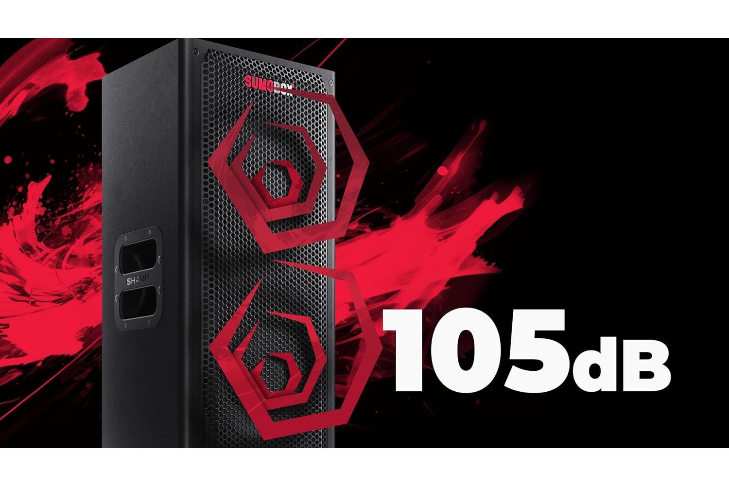 Boasting a reach of 105dB, the formidable SHARP SCP-LS100 SumoBox marvellously supervises sound, uplifting every beat and note with stunning lucidity and finesse. The powerful speaker system featuring 2 x 8" woofers and 2 x 2" tweeters delivers a ground shaking 120W RMS, providing an encompassing and rich audio experience whether you're hosting a party or enjoying a flick indoor movie theatre style.