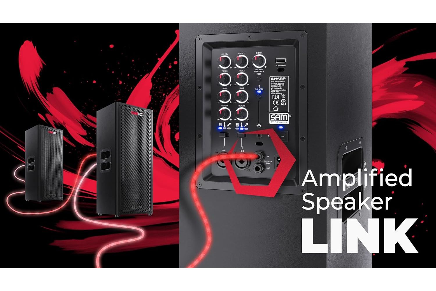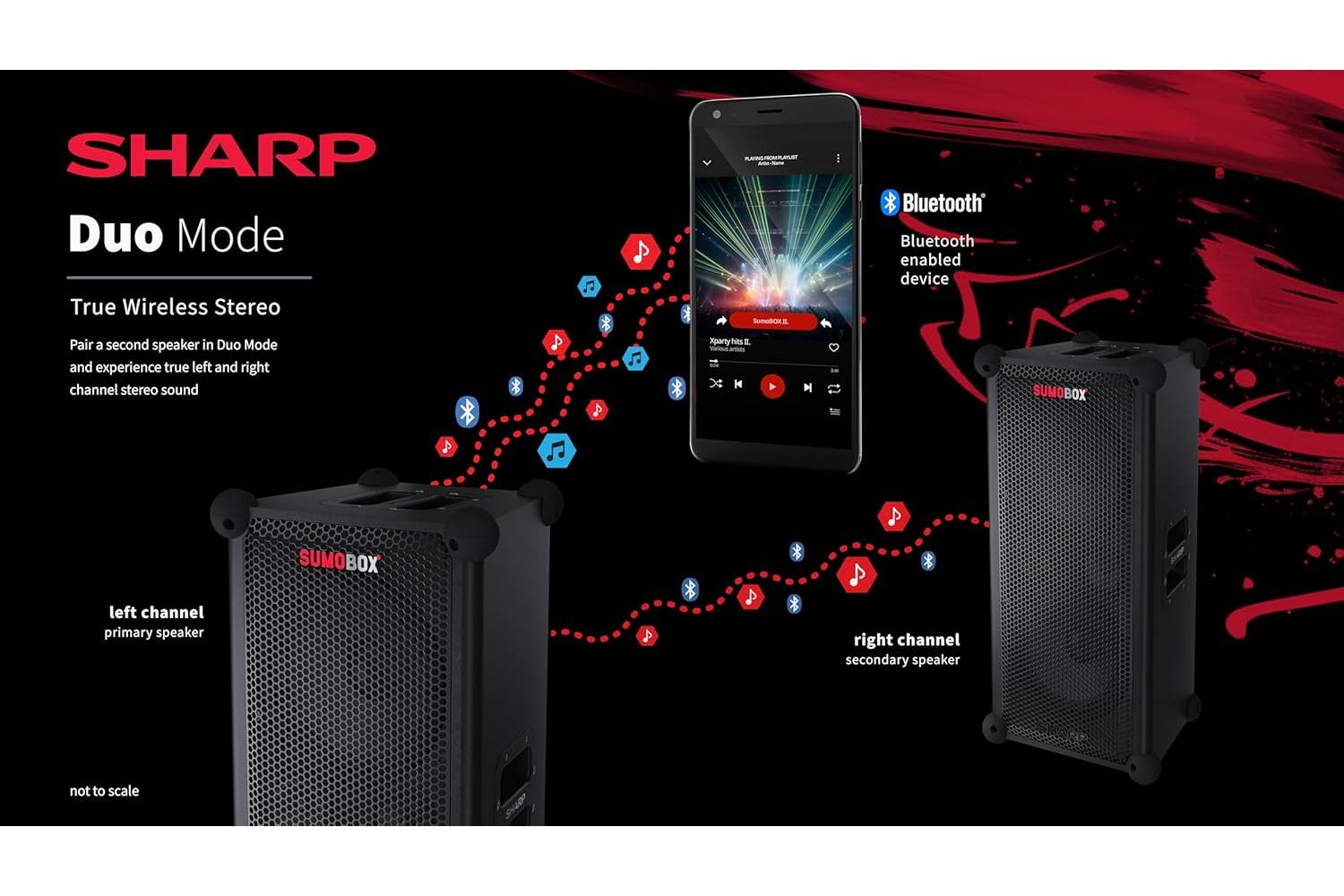 Included in this exquisite setup is a dedicated Link to link 2 or more SumoBox together via the amplified Speaker Link functionality to encapsulate the perfect audio arena for your space. Whether you're belting out classics or jamming to contemporary hits, the SHARP SCP-LS100 is the ideal choice for a superior Bluetooth speaker experience.