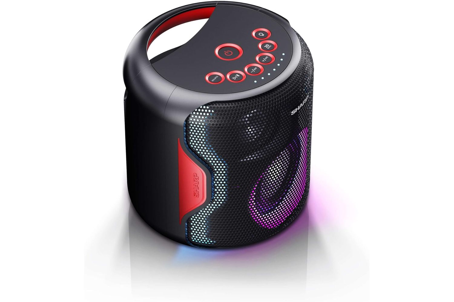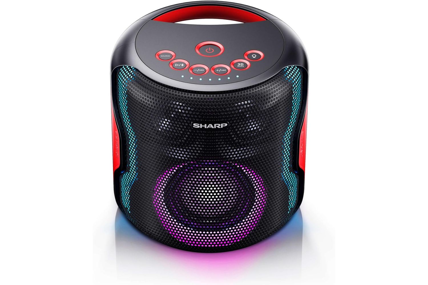 Immerse yourself in a panoramic, full-bodied music presentation created by the unique 3D spatial audio feature. Content your craving for a pulsating rhythm with SHARP's Super bass boost. Each thump, kick, and bass note will ring out loud, unique, and accurate. Create your disco at home or any gather around with LED lights built into the speaker. The sparkling party atmosphere will complement the high-octane sound, pulsing to the beat of the melody.